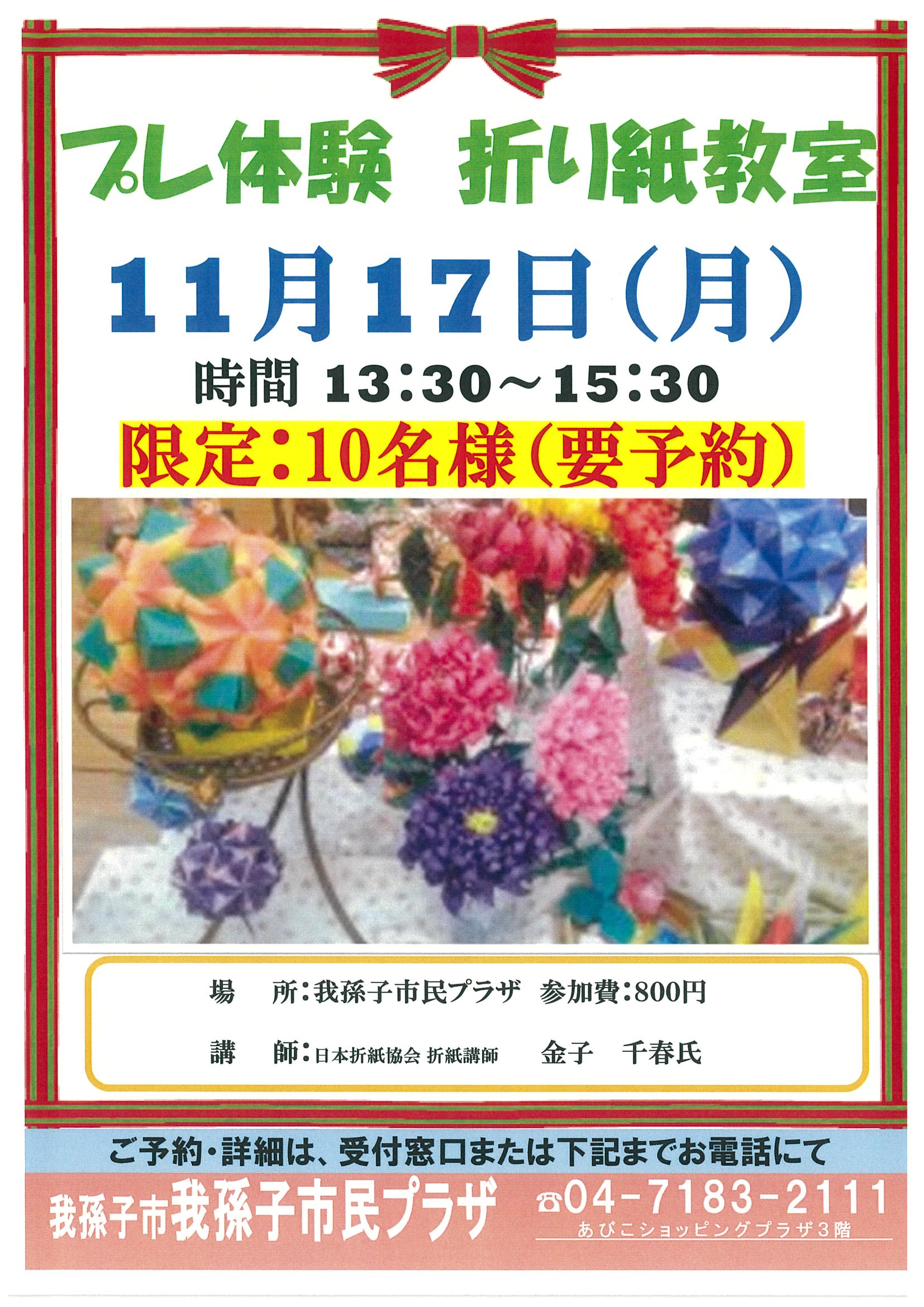 手先を使う折り紙は脳トレにもなるので、是非、ご参加ください
