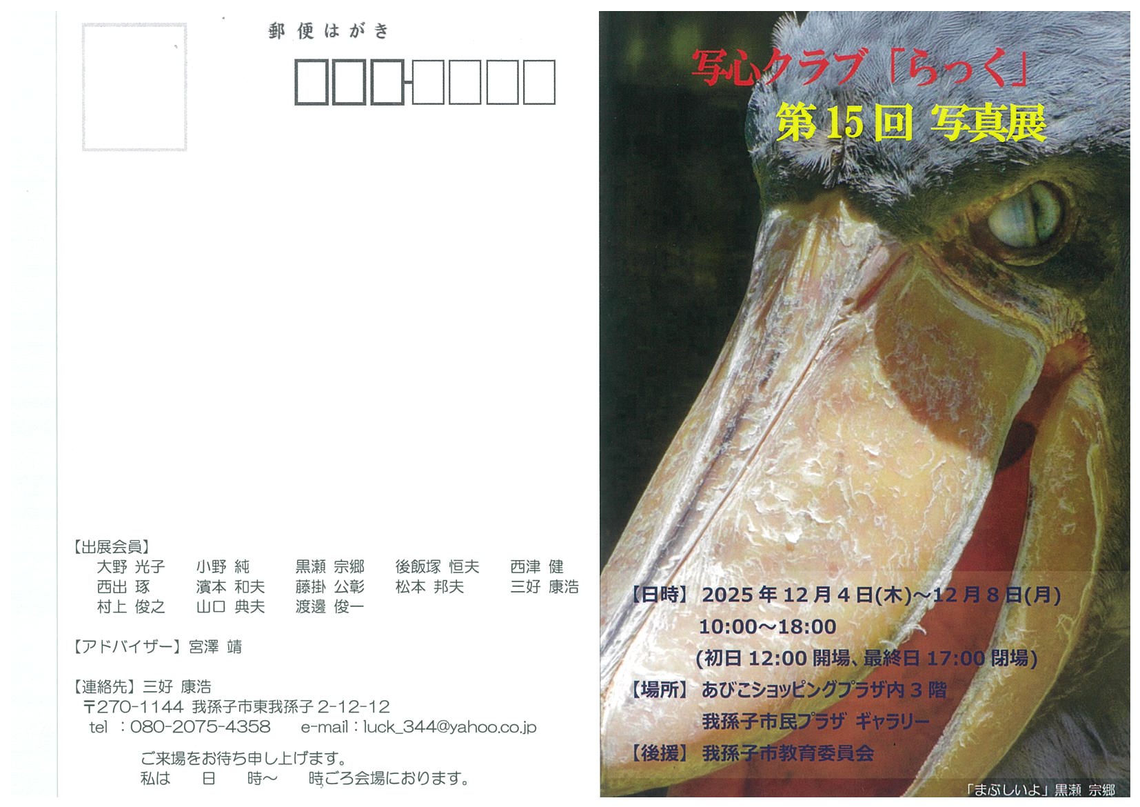 写心クラブ「らっく」にの写真展が下記の日程で開催されます