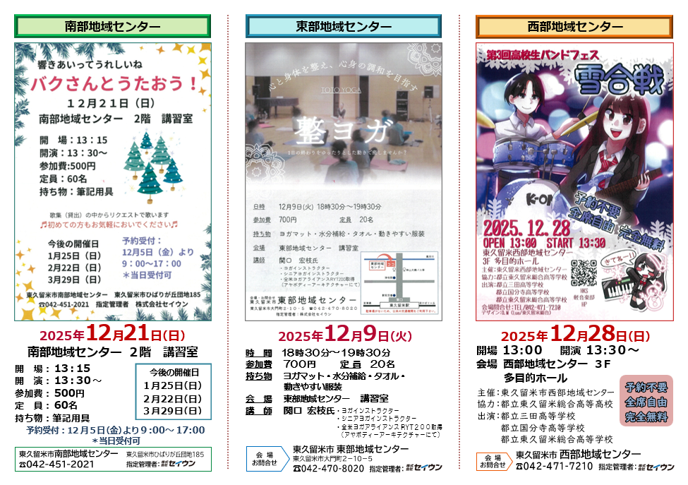 ◇お問合せ先:東久留米市市民プラザ Tel.042-470-7813