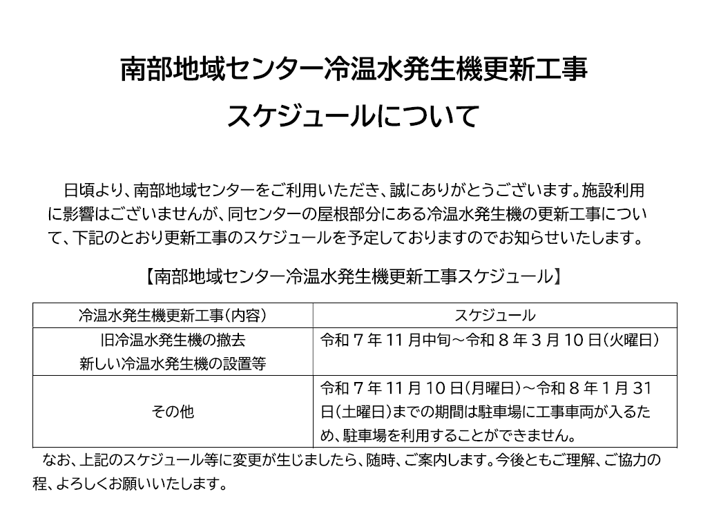 【南部地域センター冷温水発生機更新工事 スケジュールについて】