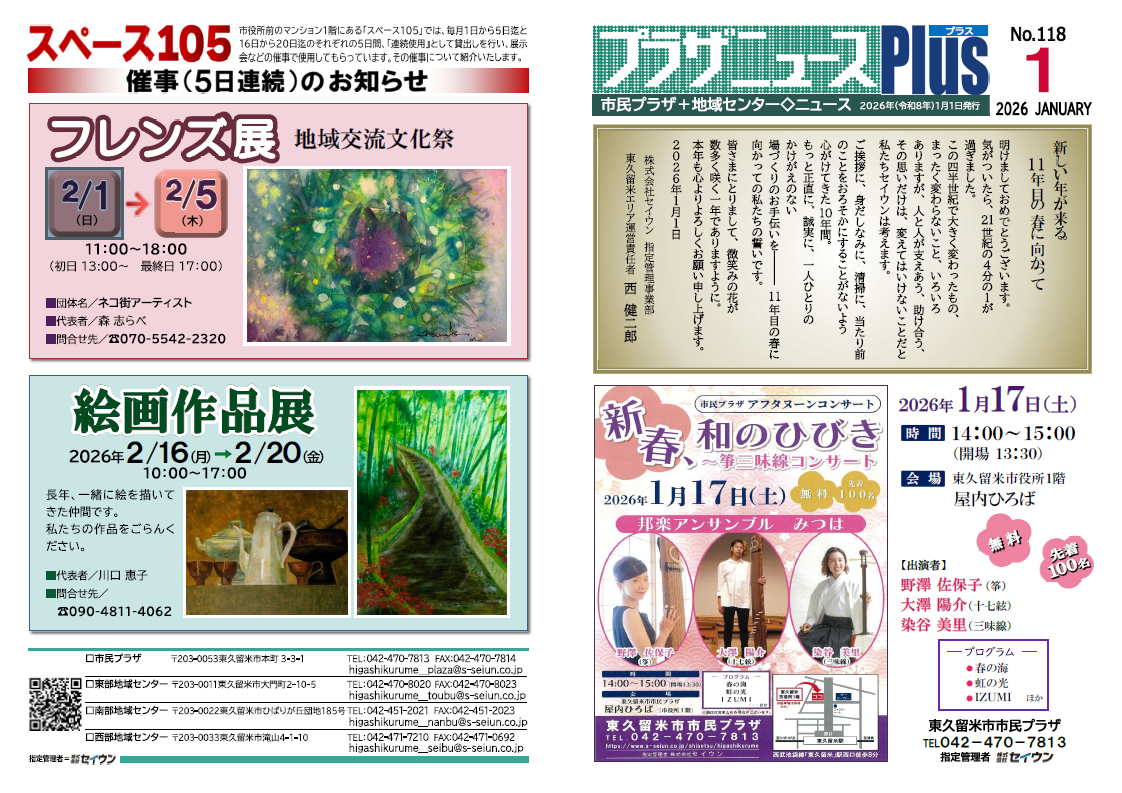 【市民プラザ】プラザニュースPlus1月号 bP18 発行のお知らせ