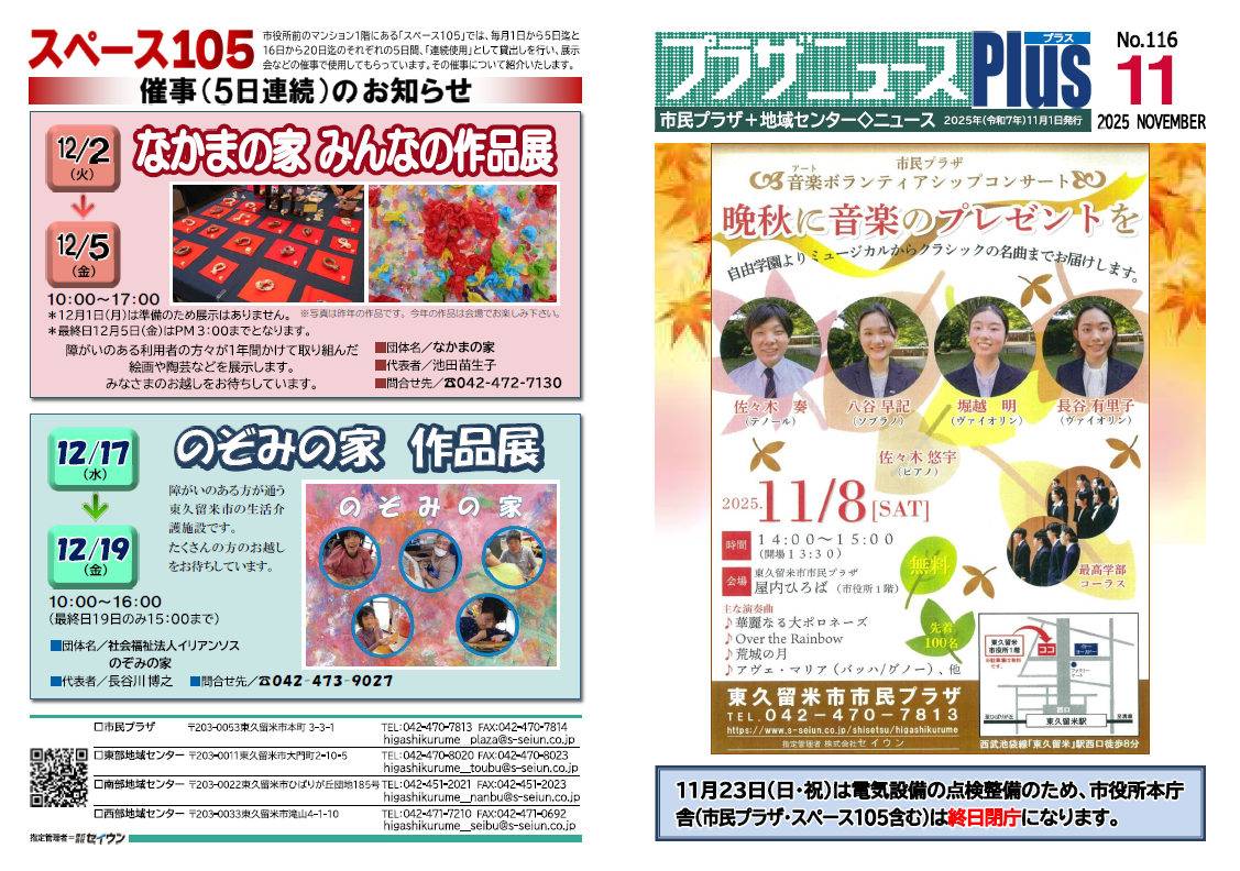 【市民プラザ】プラザニュースPlus11月号 bP16 発行のお知らせ