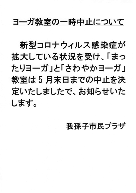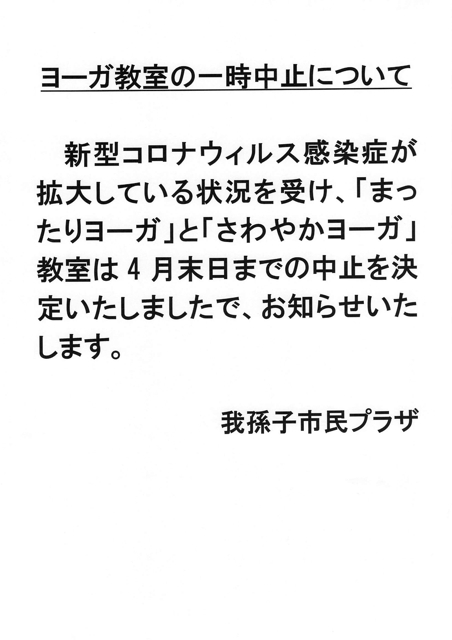 まったりヨガ、さわやかヨガ中止のお知らせ