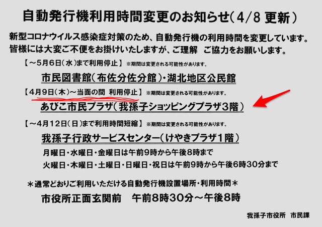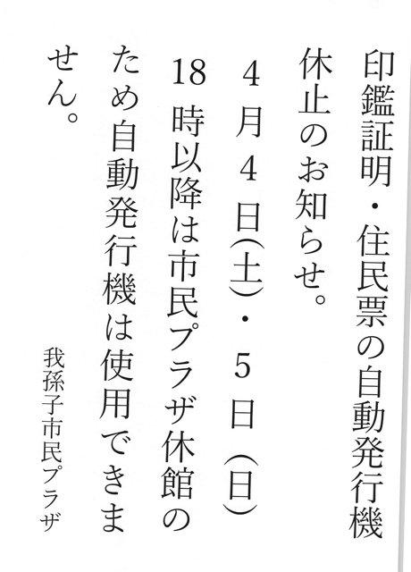 印鑑証明、住民票の自動発行機休止のお知らせ