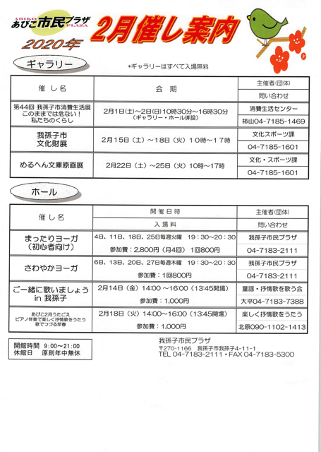 [ 関連リンク:あびこ市民プラザFacebook ]