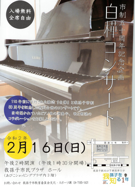 午後2時開演(午後1時30分開場) あびこ市民プラザホールにて