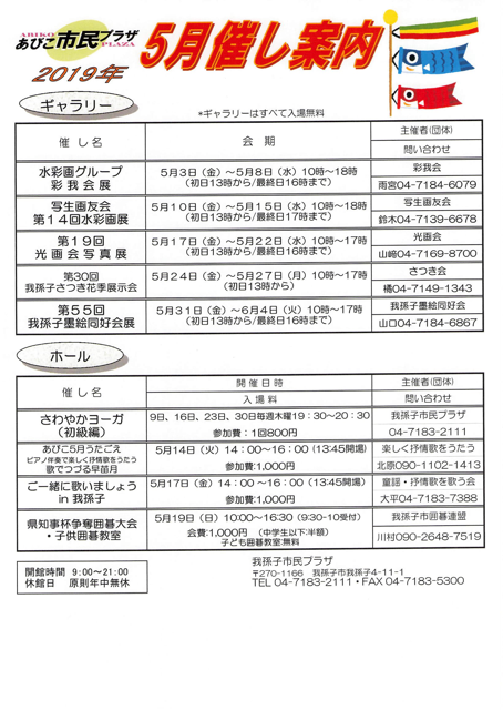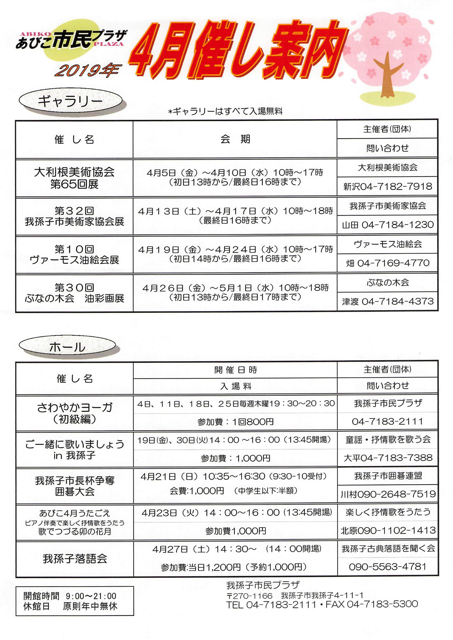 あびこ市民プラザ4月の催しをご案内いたします。