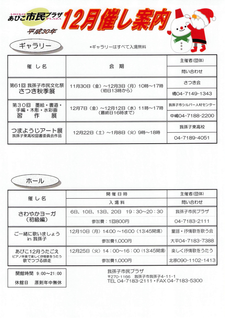 [ 関連リンク:あびこ市民プラザFacebook ]