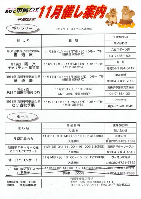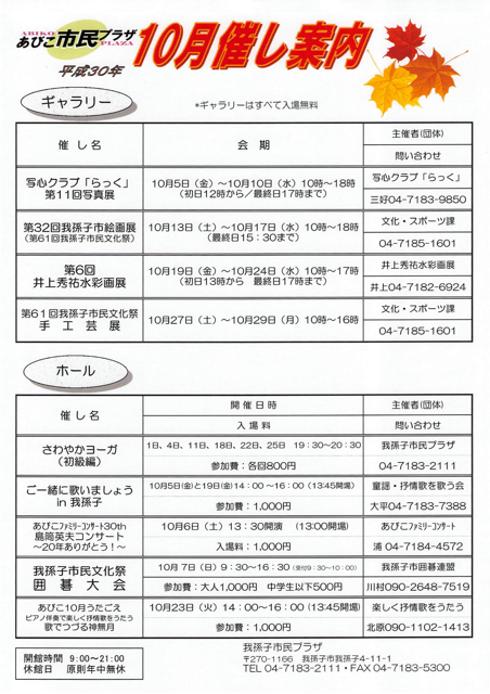 あびこ市民プラザ10月の催しをご案内いたします。