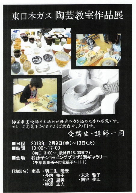 「東日本ガス 陶芸教室作品展」を開催いたします。