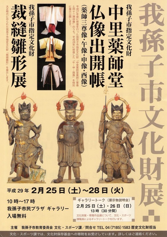 平成27年度に修復を行なった我孫子市指定文化財「中里薬師堂薬師三尊像と