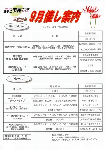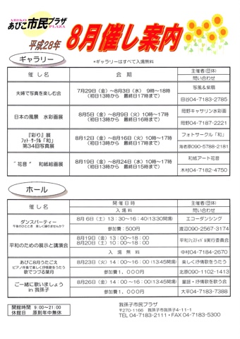我孫子市民プラザ8月の催し物をご案内いたします。
