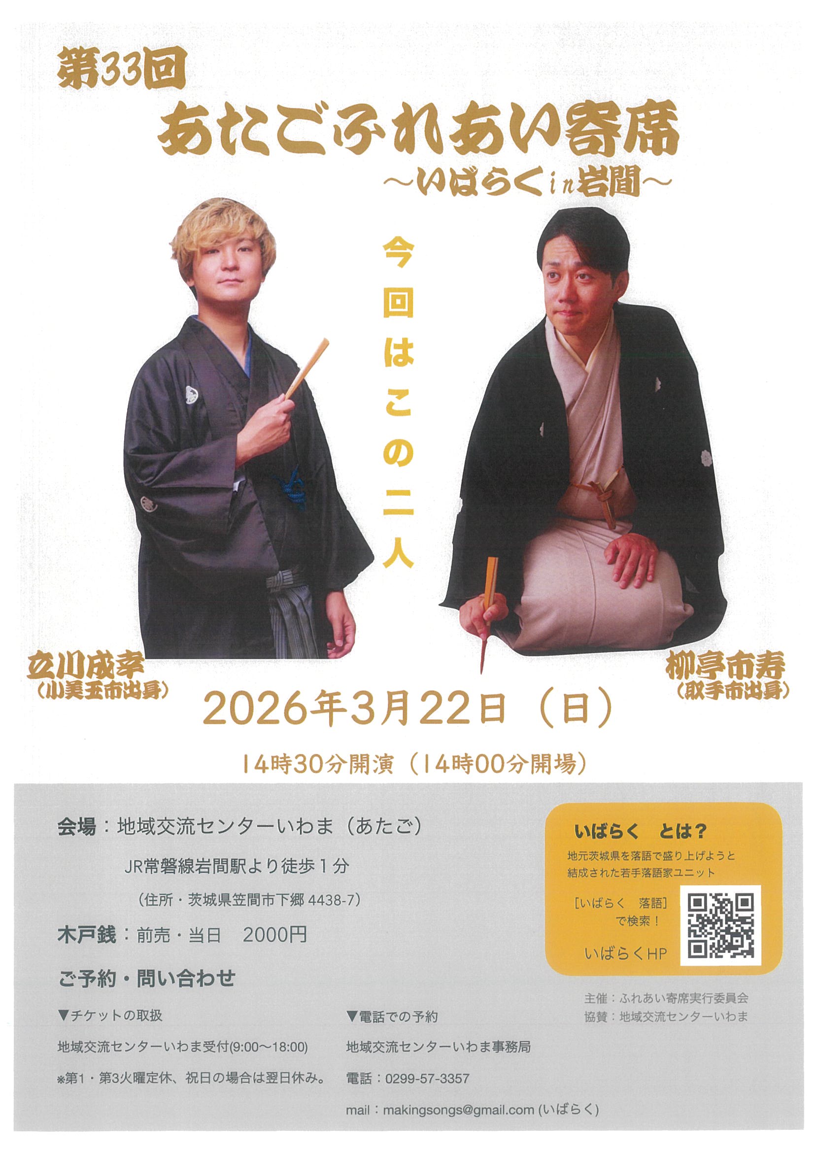 【あたごふれあい寄席】のお知らせ