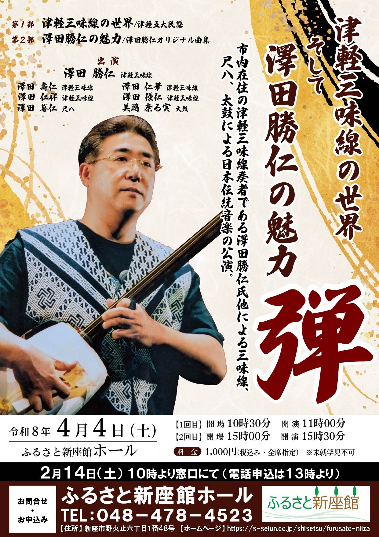 4月4日(土) 「津軽三味線の世界」そして「澤田勝仁の魅力」開催のお知らせ