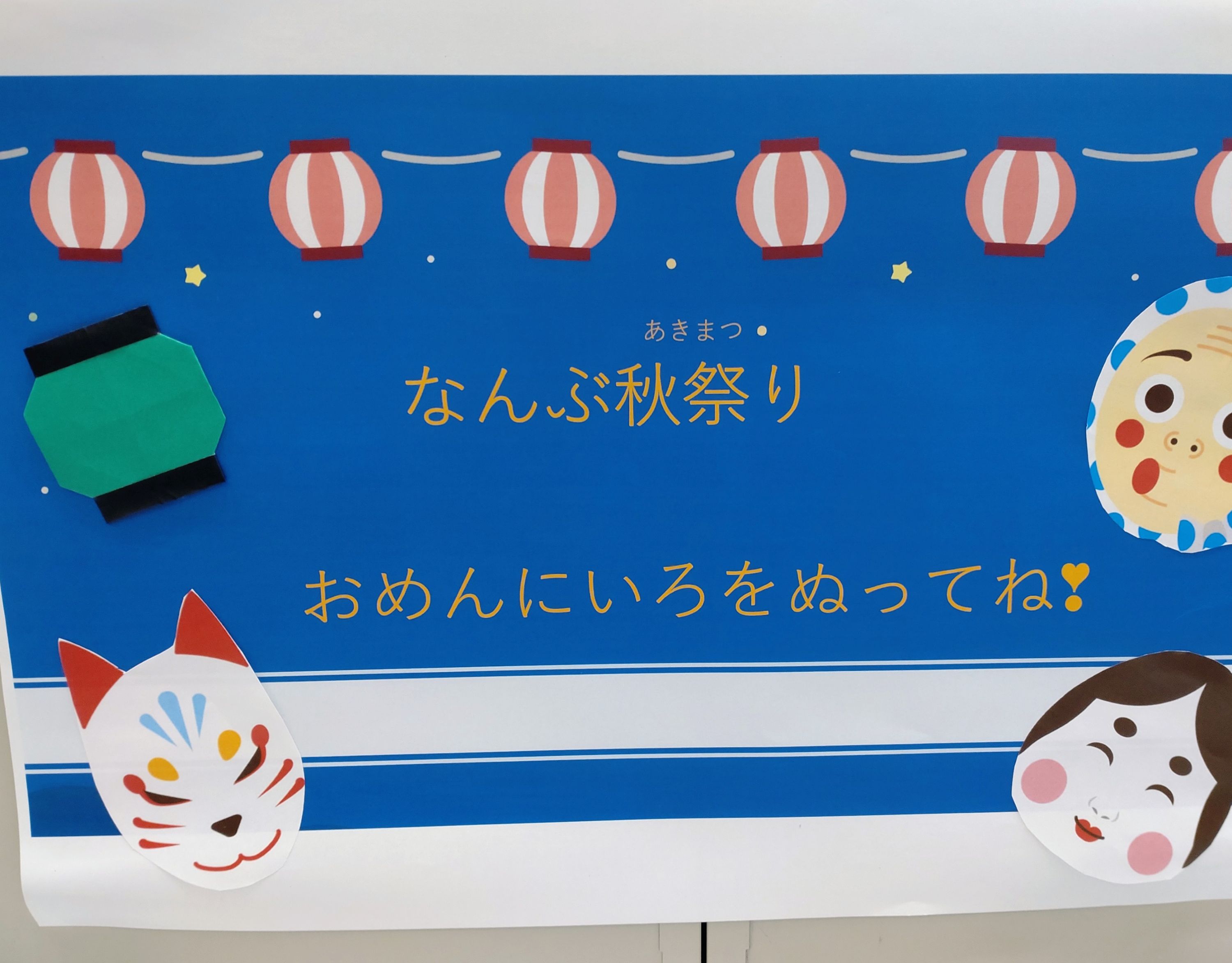 好きなお面に色を塗って飾ってくださいね♪