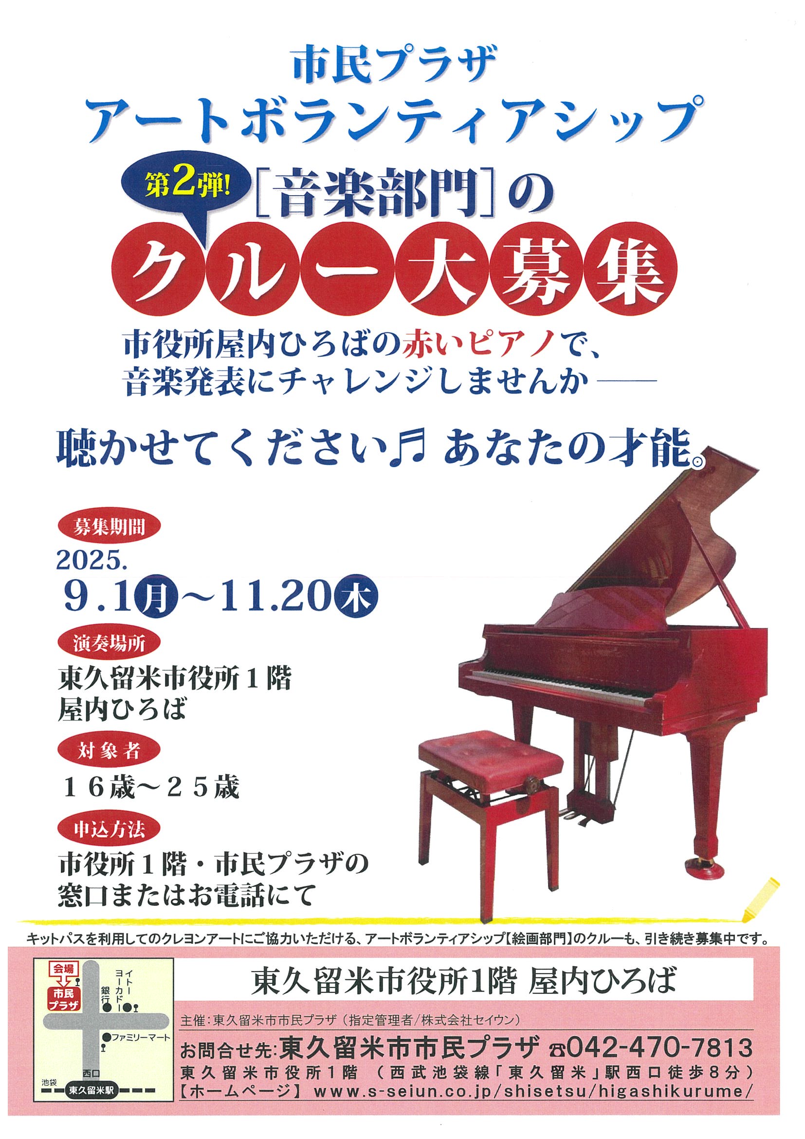 ■お問合せ先 : 東久留米市市民プラザ TEL. 042‐470‐7813