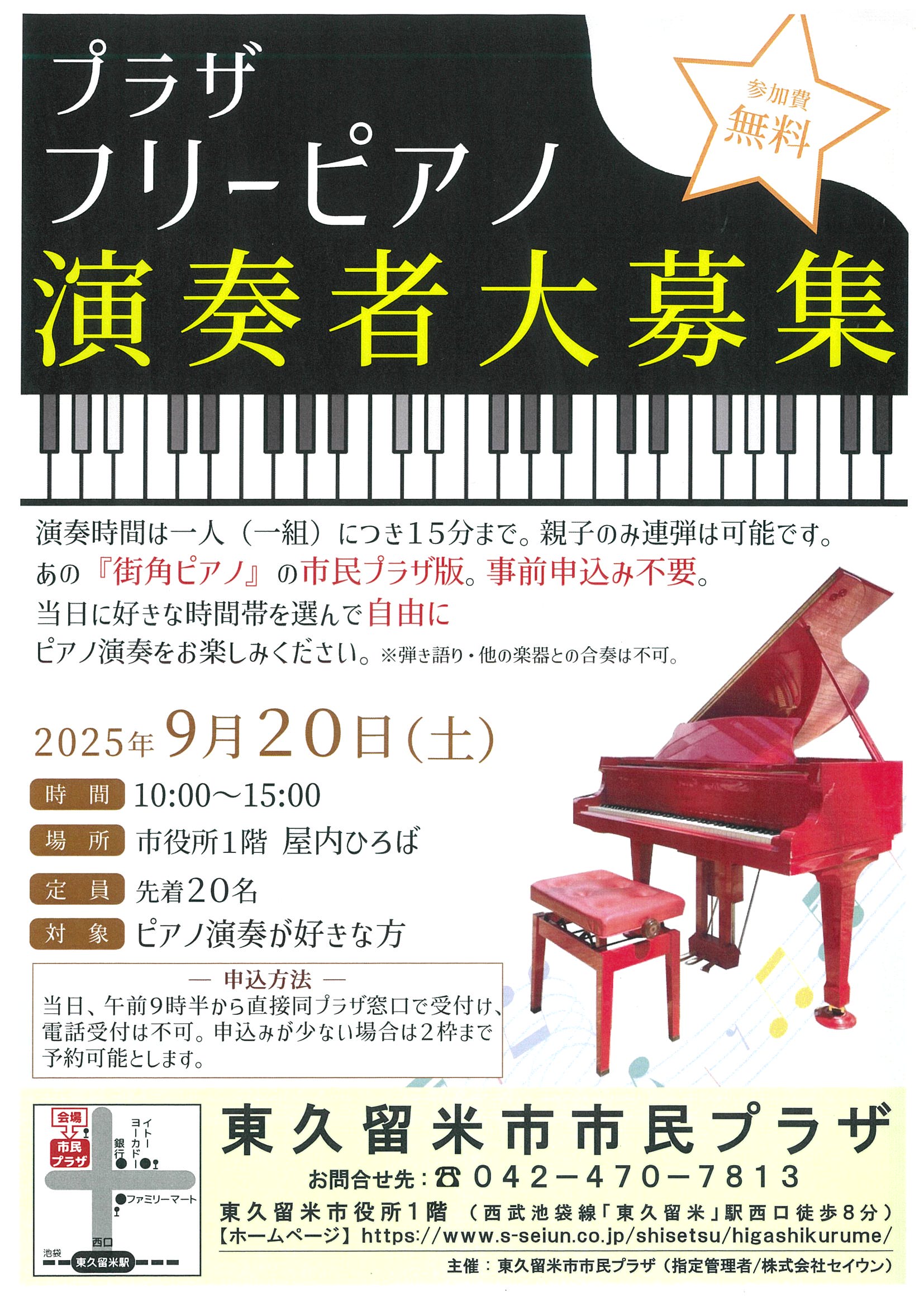 【市民プラザ】フリーピアノ 演奏者大募集