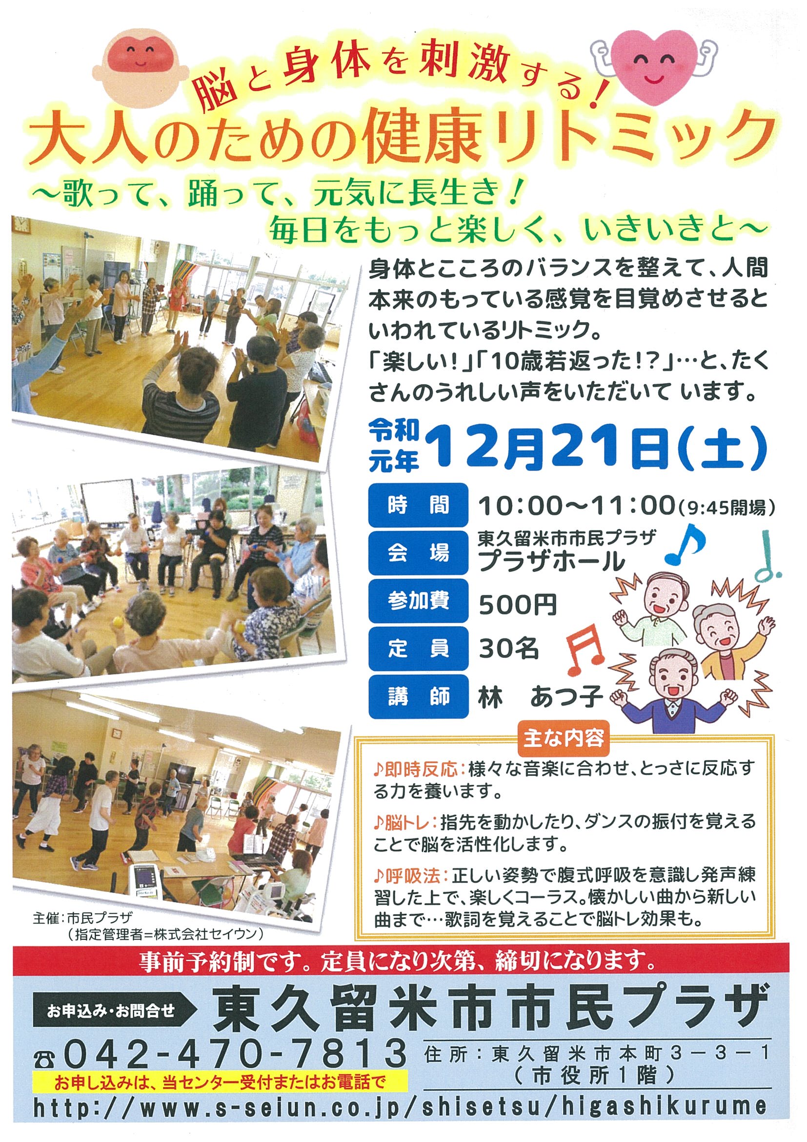 ●お申込み・お問い合わせ: 042−470−7813(東久留米市民プラザ)