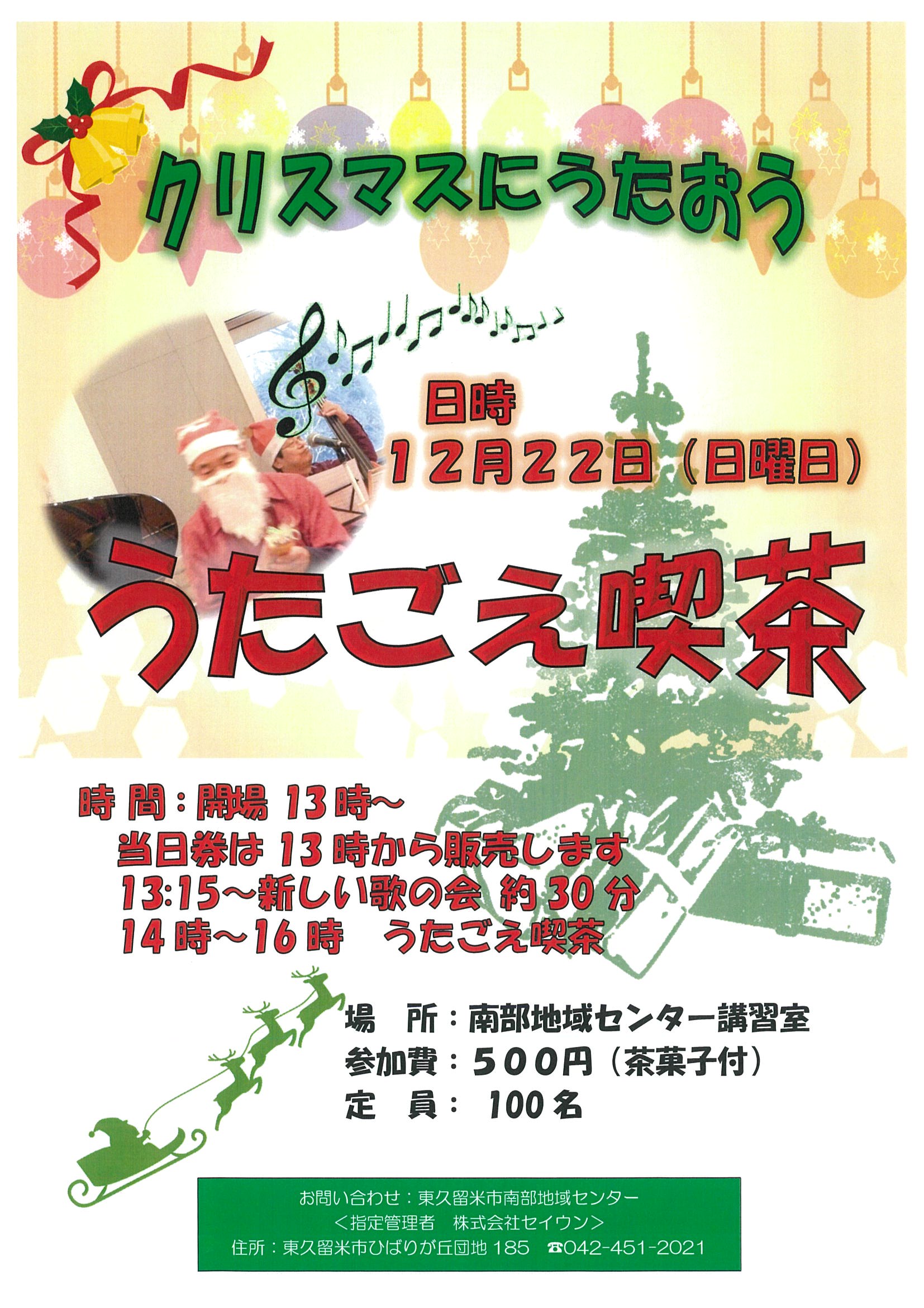 【南部地域センター】うたごえ喫茶“クリスマスにうたおう”開催のお知らせ