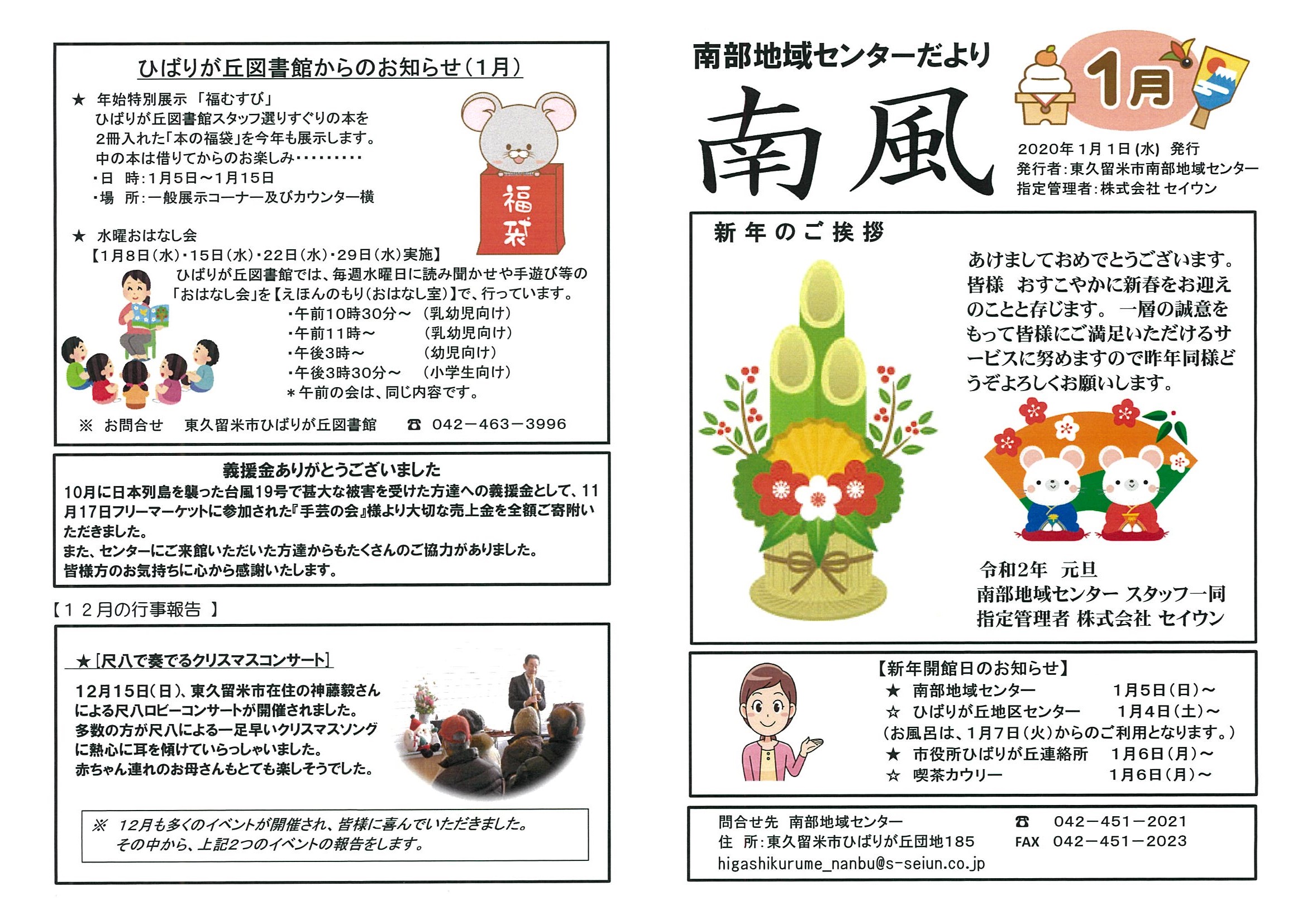【南部地域センター】南部地域センターだより『南風』1月号掲載のお知らせ