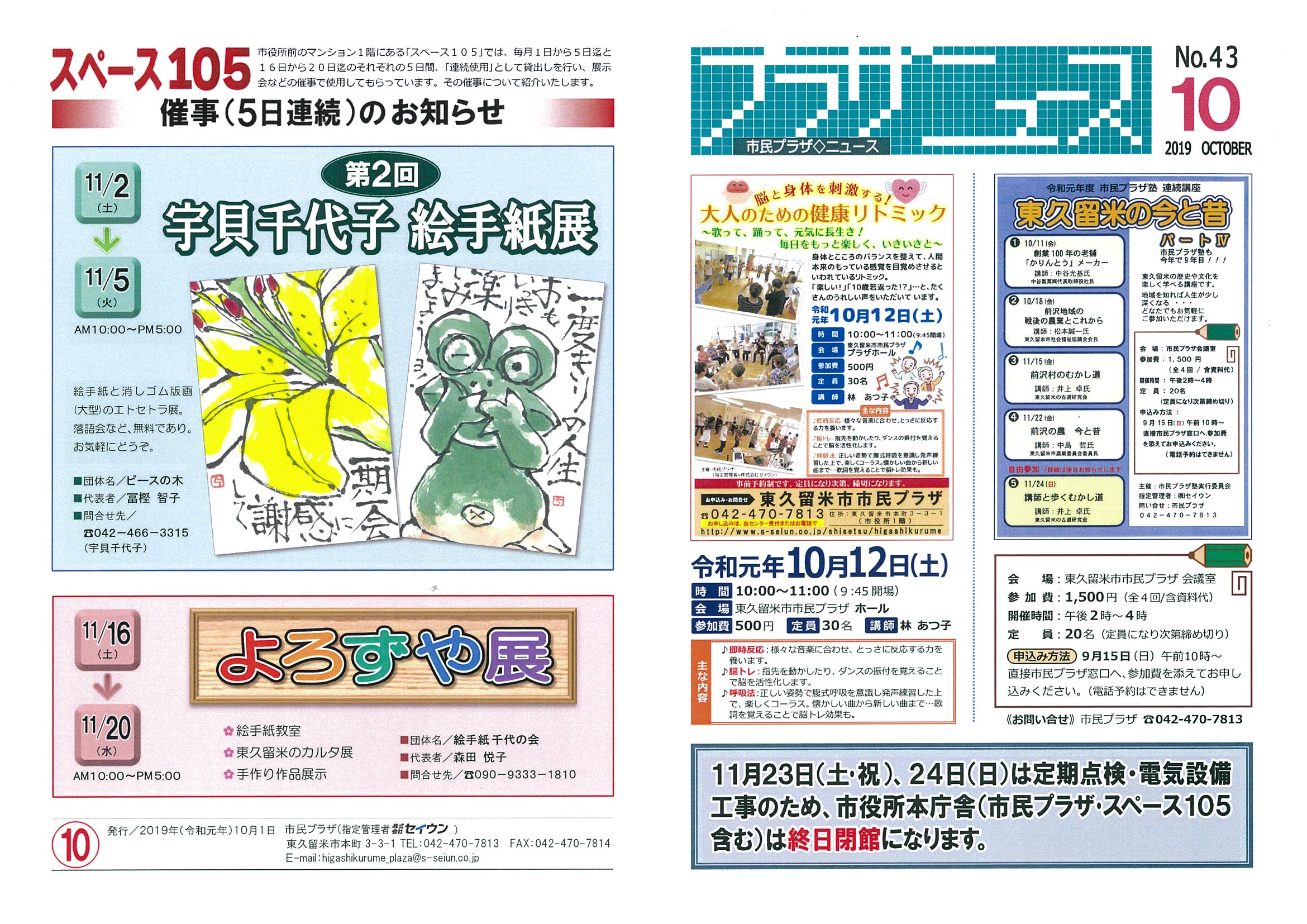 ●お申込み・お問い合わせ: 042−470−7813(東久留米市民プラザ)
