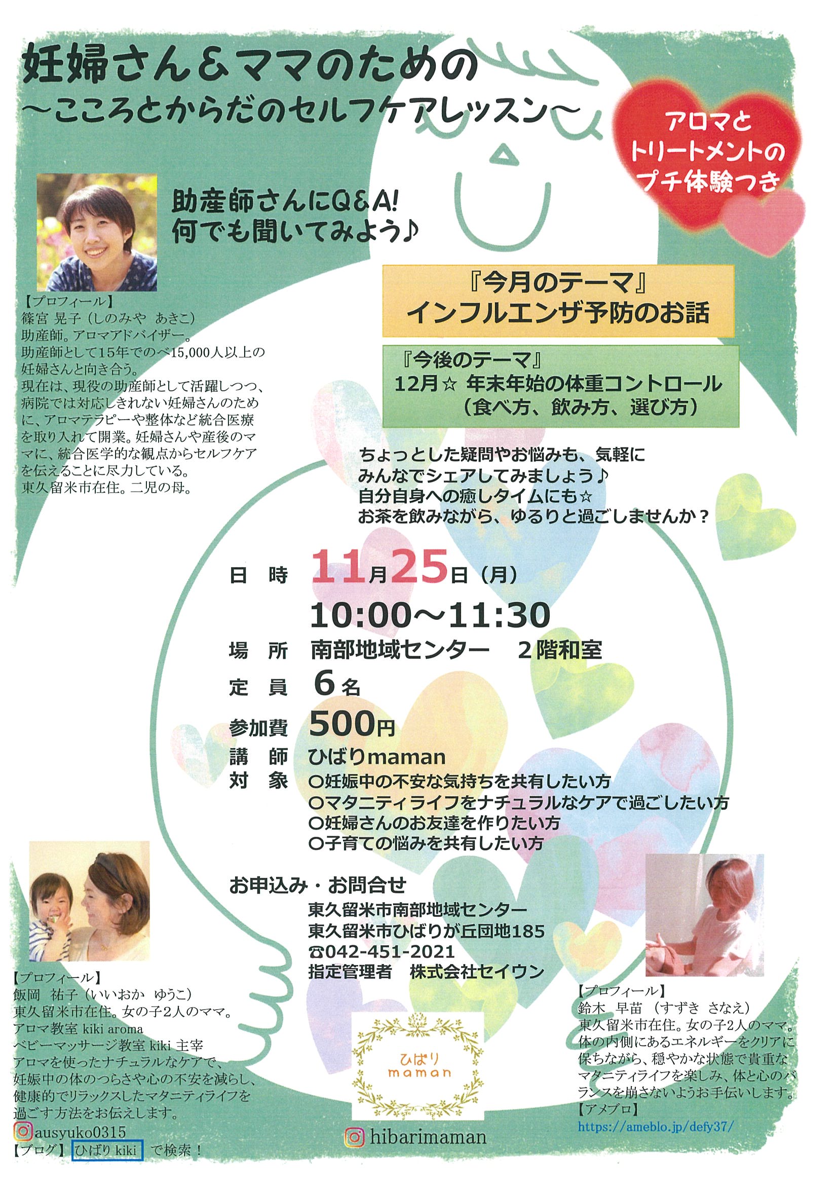 【南部地域センター】妊婦さん&ママのための〜こころとからだのセルフケアレッスン〜