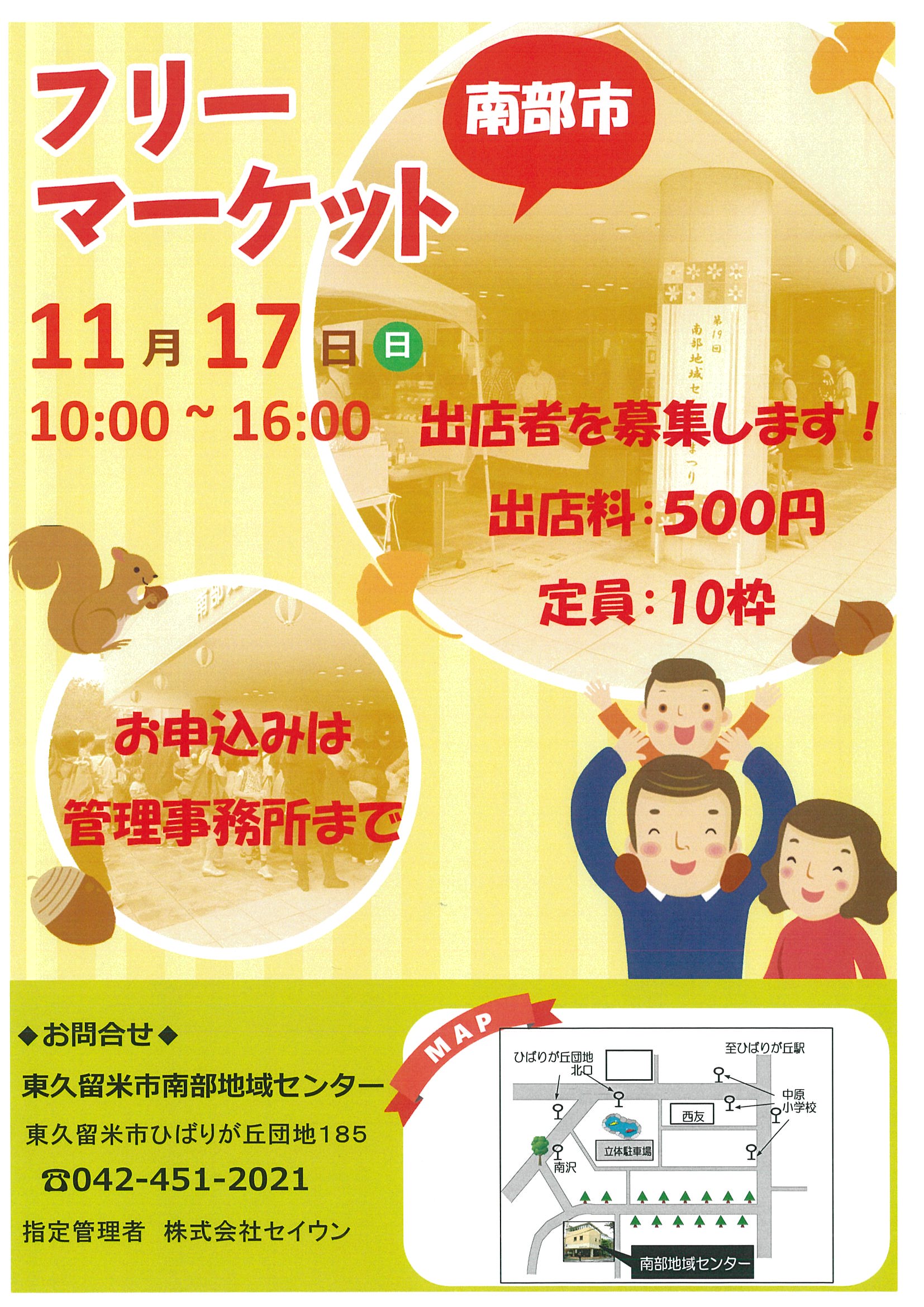 【南部地域センター】南部市フリーマーケット出店者募集!