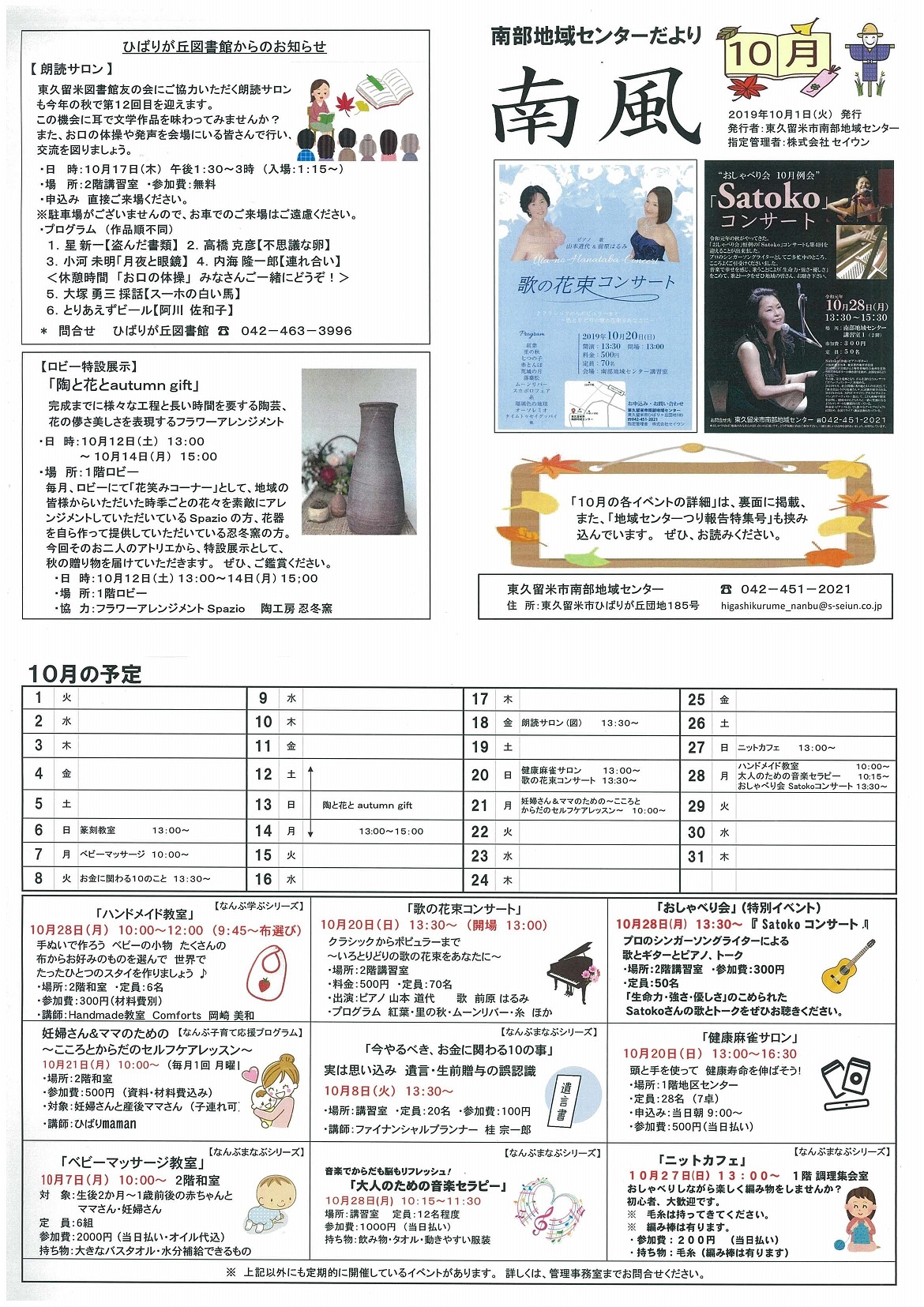 【南部地域センター】南部地域センターだより『南風』10月号掲載のお知らせ
