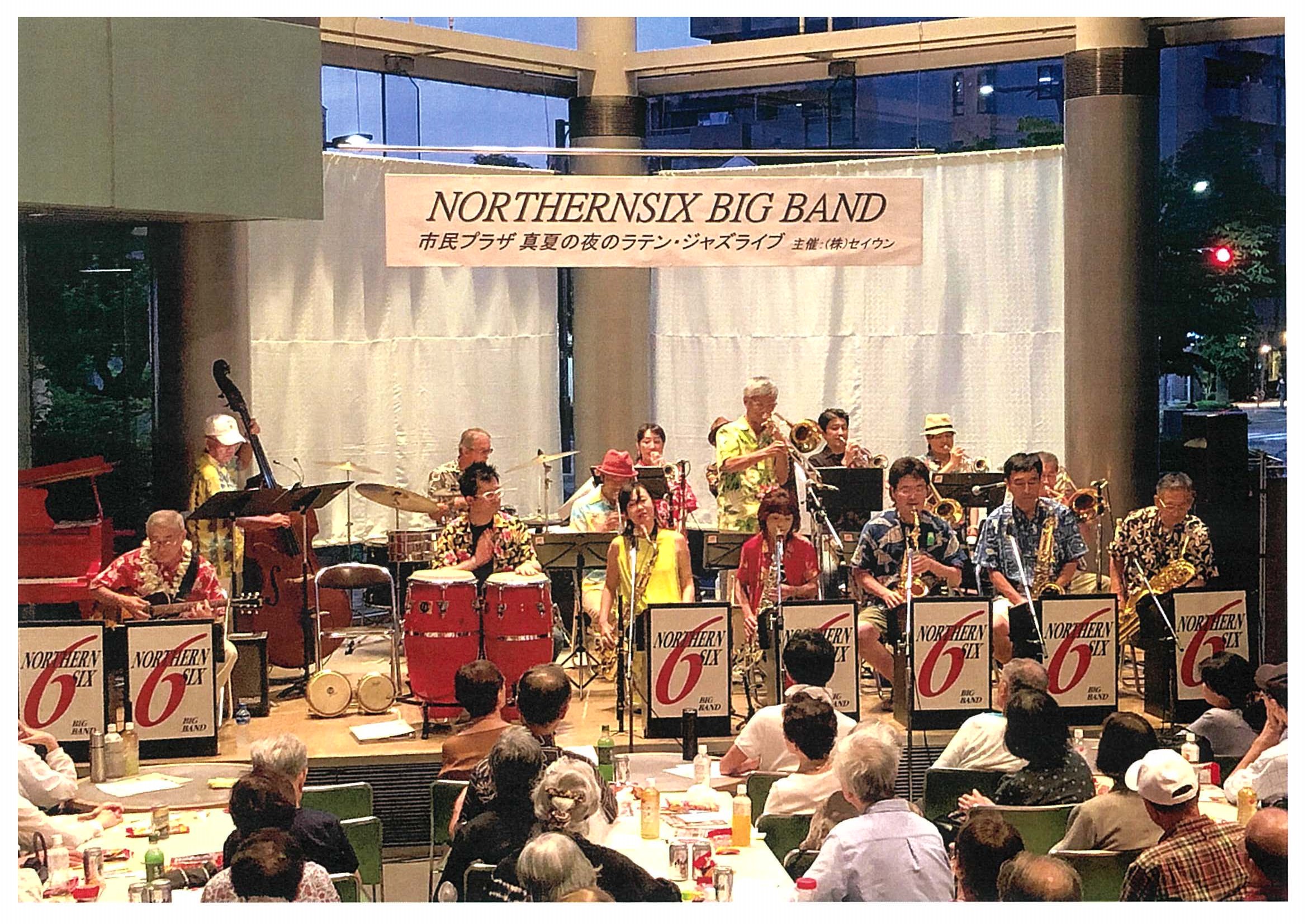 もはや市民プラザの夏の定番となりつつある、〈ノーザンシックスビッグバンド〉のライブを開催しました。