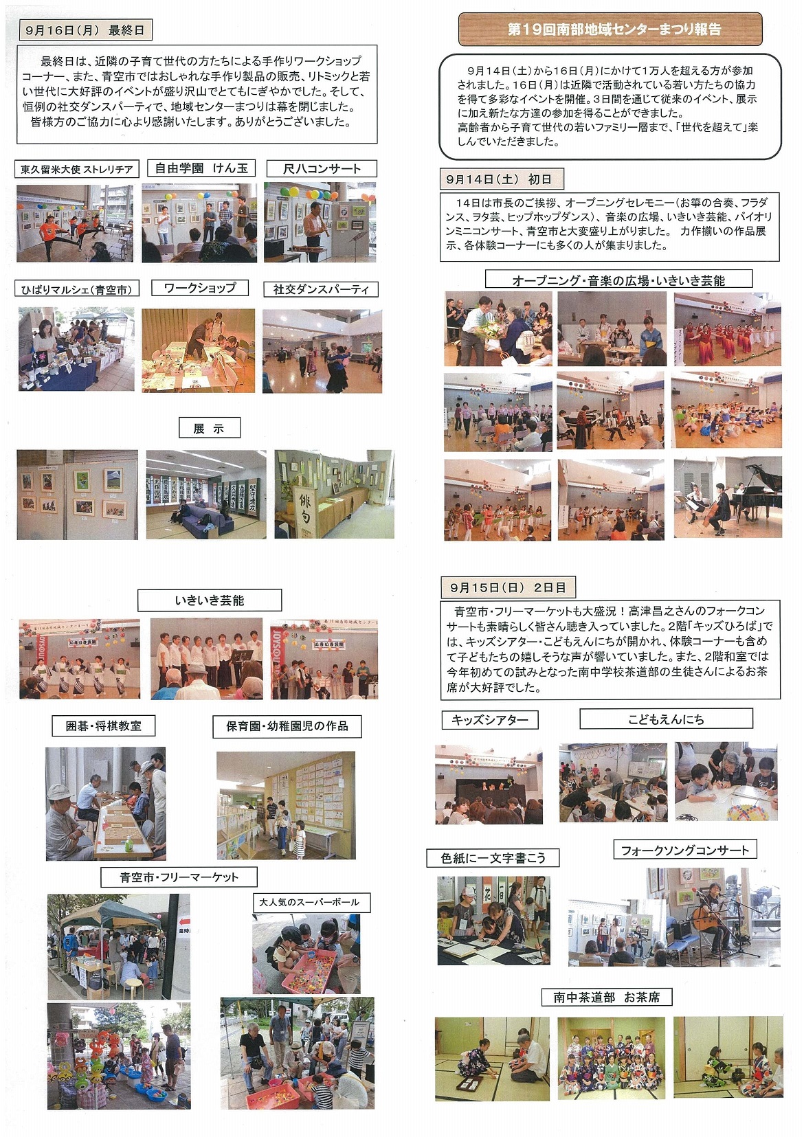 今回は先日開催された南部地域センターまつり特集となっております。