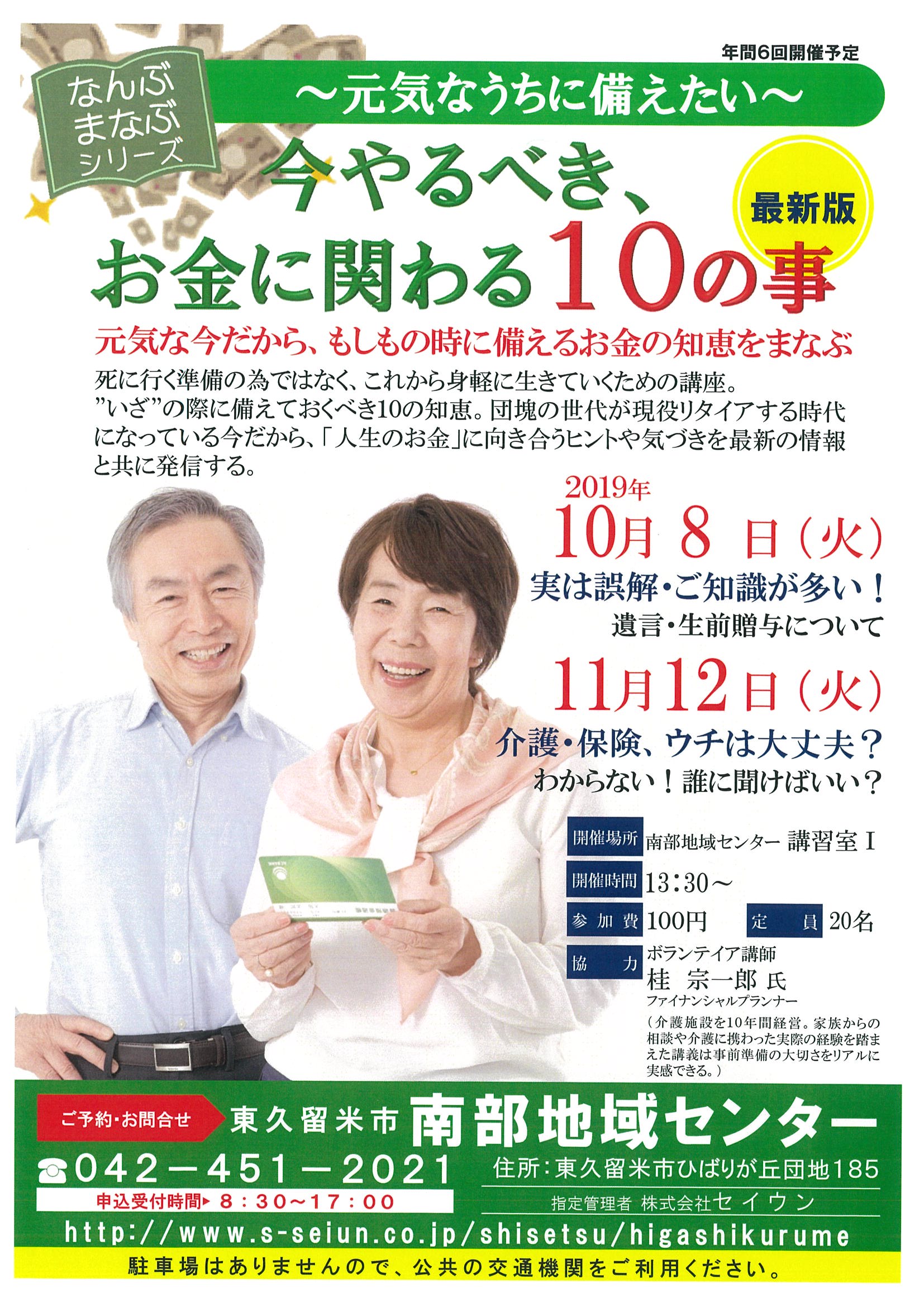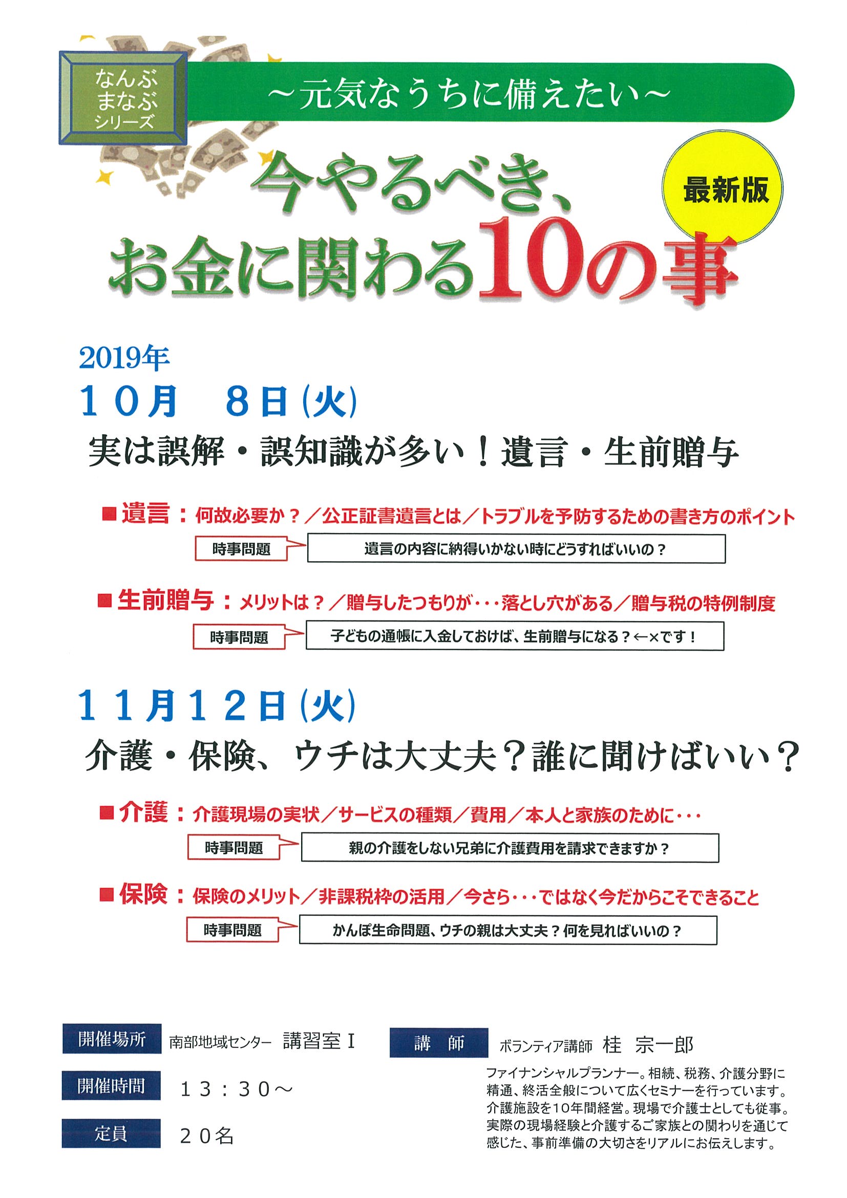 【南部地域センター】「今やるべきお金に関わる10の事」講座開催のお知らせ