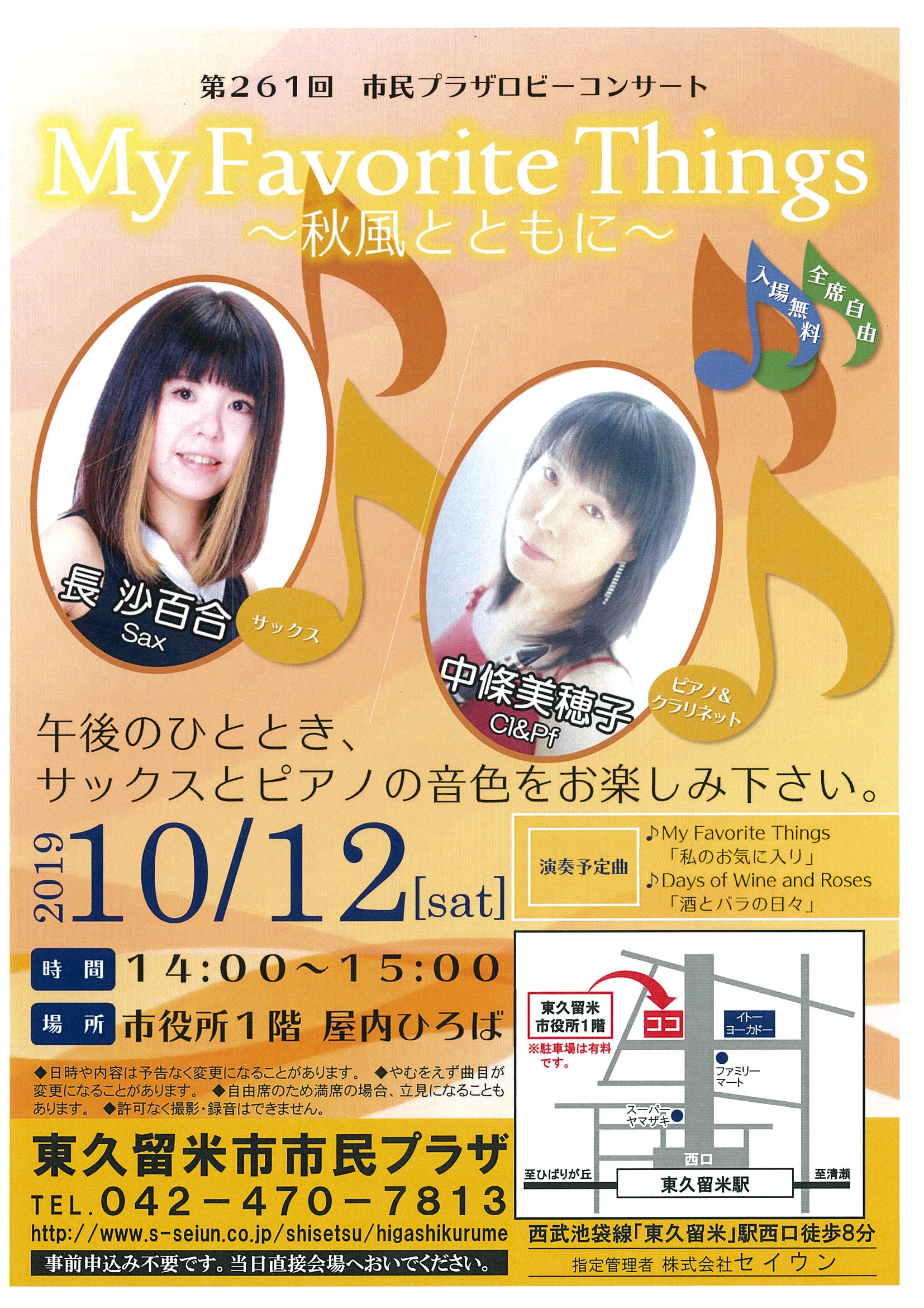 10月のロビーコンサートは、『My Favorite Things 〜秋風とともに〜』と題し、サックスとピアノ&クラリネットで奏でるジャズのナンバーをお届けします。
