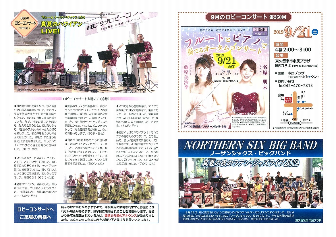 【市民プラザ】 第260回 ロビーコンサートのお知らせ