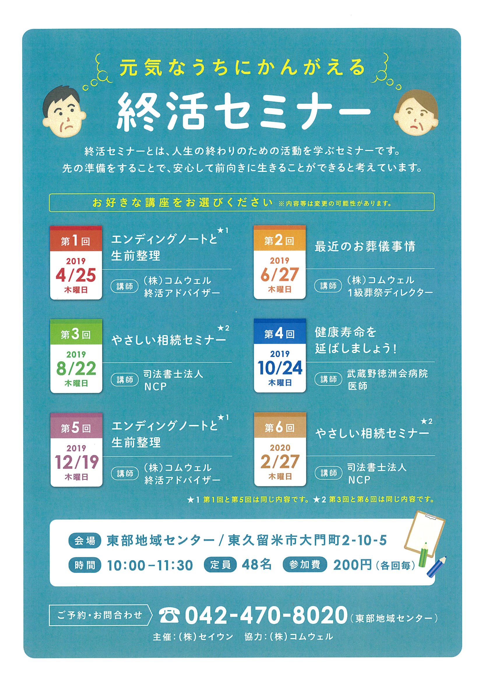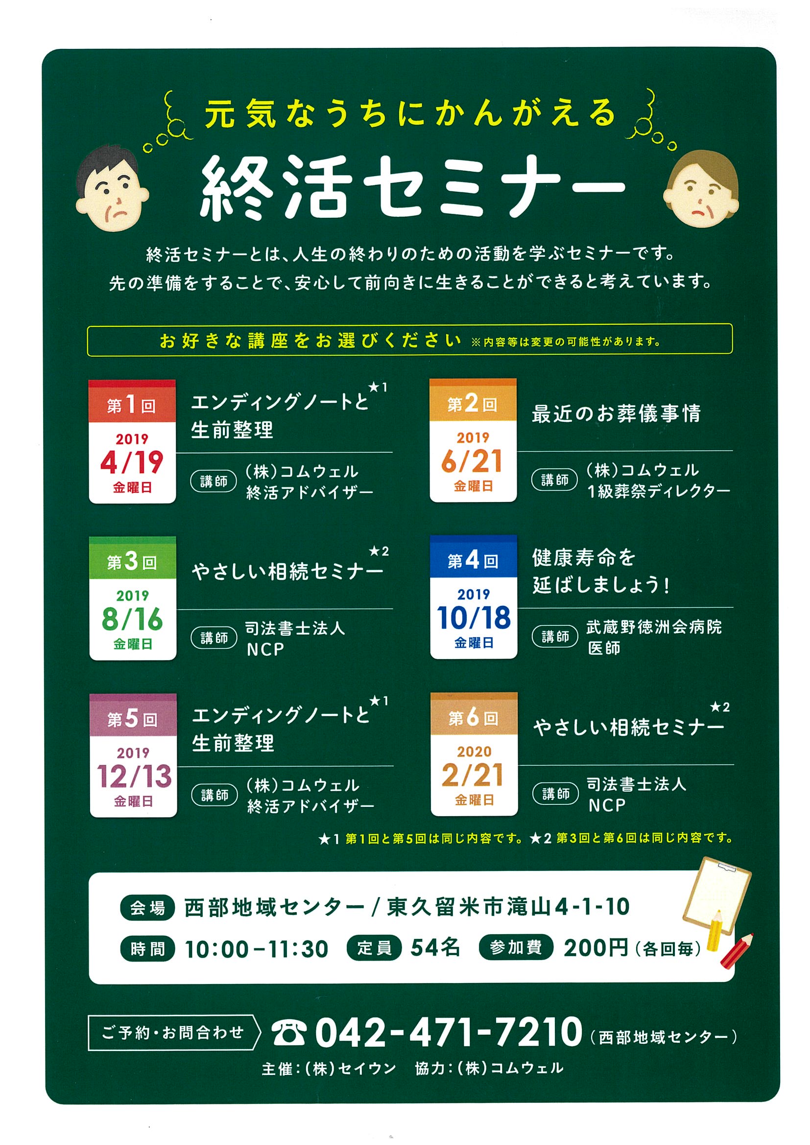 昨年度、当センターでとても人気になった終活セミナーを今年度も開催します。
