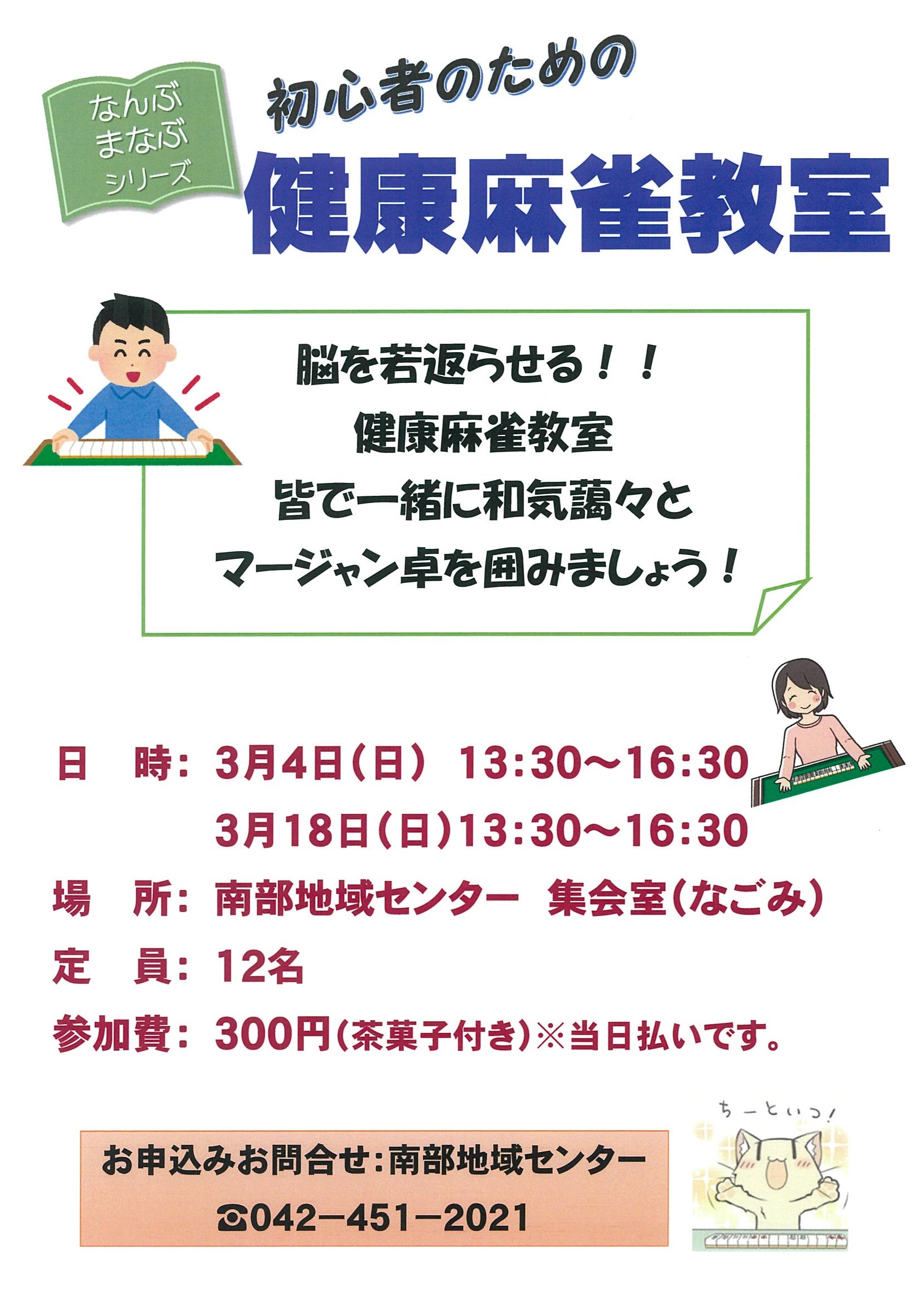 【南部地域センター】「初心者のための麻雀教室」&【麻雀サロン」のお知らせ