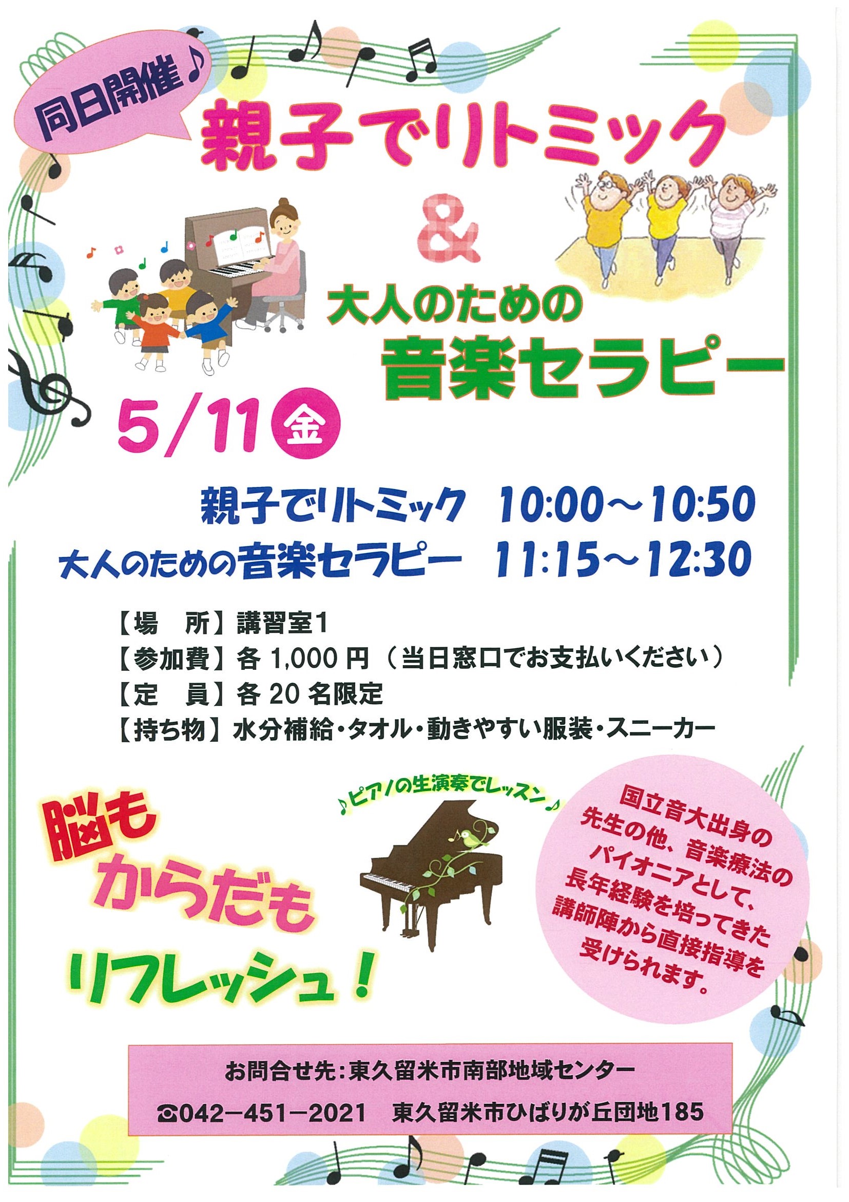 【南部地域センター】親子でリトミック&大人のための音楽セラピー