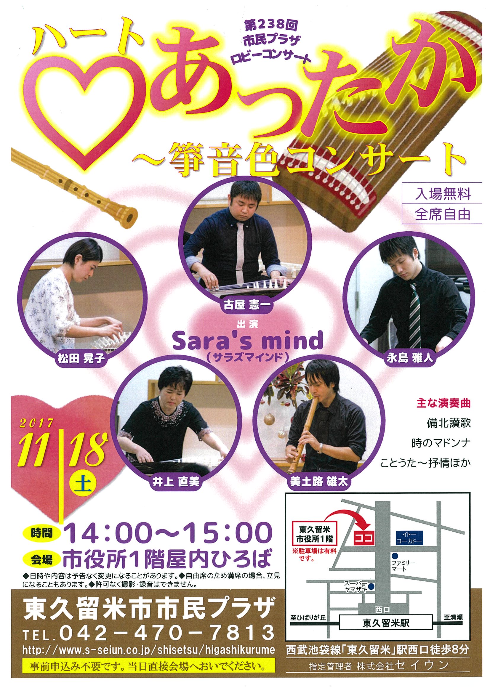 (ハート)あったか 〜箏音色コンサート をお届けします。ご出演は、Sara’s mind(サラズマインド)さんです。皆さんのお越しをお待ちしてます。