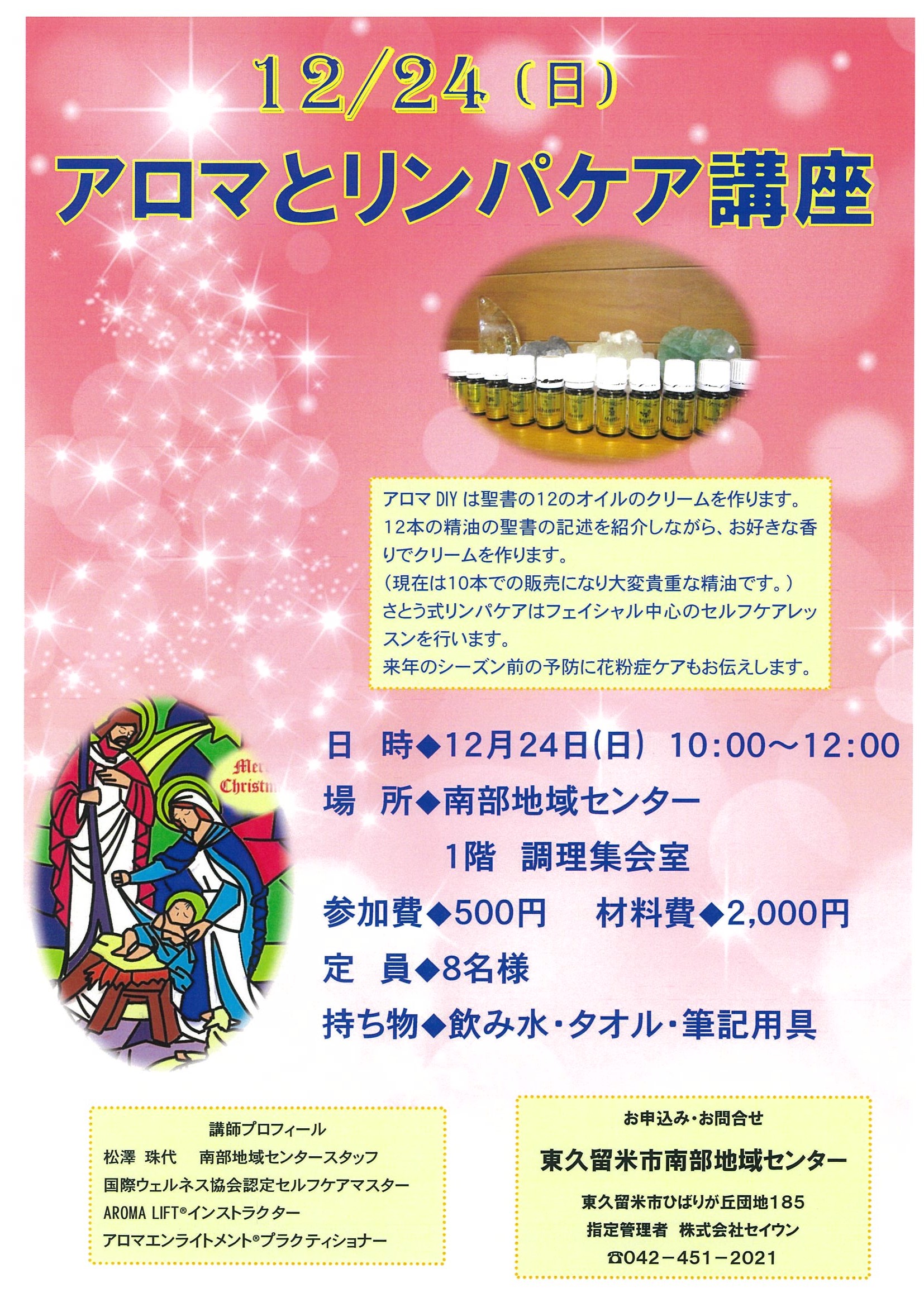 【南部地域センター】 12/24 アロマとリンパケア講座