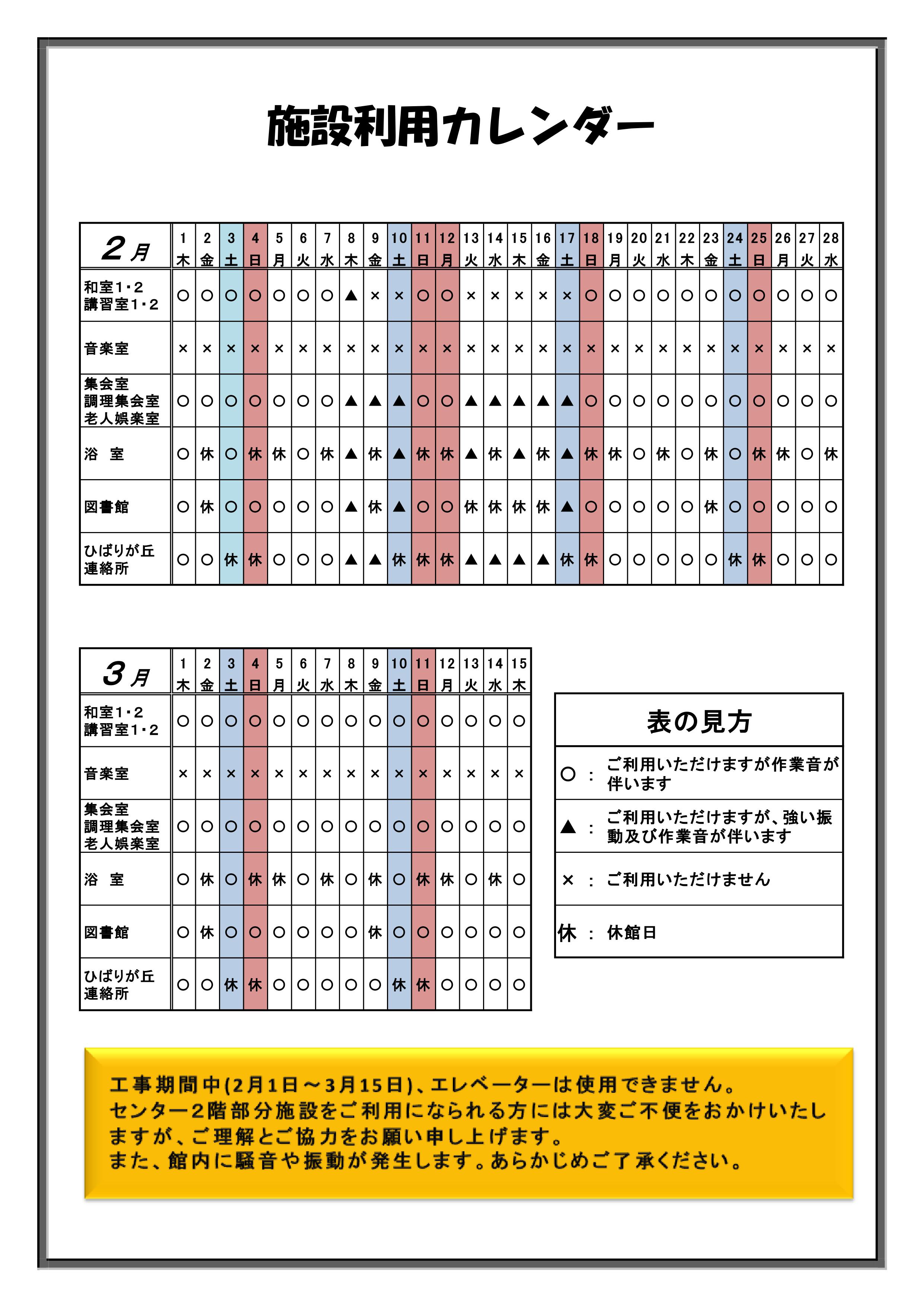 詳しくは施設利用ポスター、カレンダーをご参照ください。