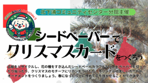 ※一部のチラシには金額が500円になっておりますが、正しくは1000円です。大変申し訳ありません。 エコなクリスマスカードをコミュニティセンター分館で一緒に作りましょう! 開催日:2025年12月14日(日) 時 間:1 […]