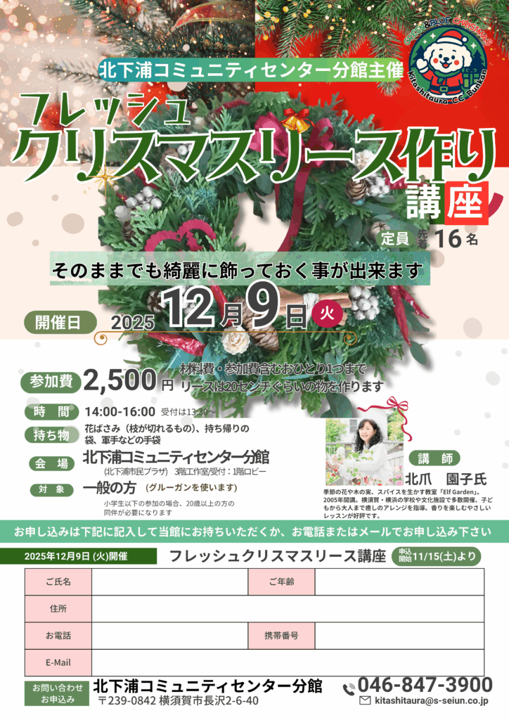 フレッシュクリスマスリース作り講座