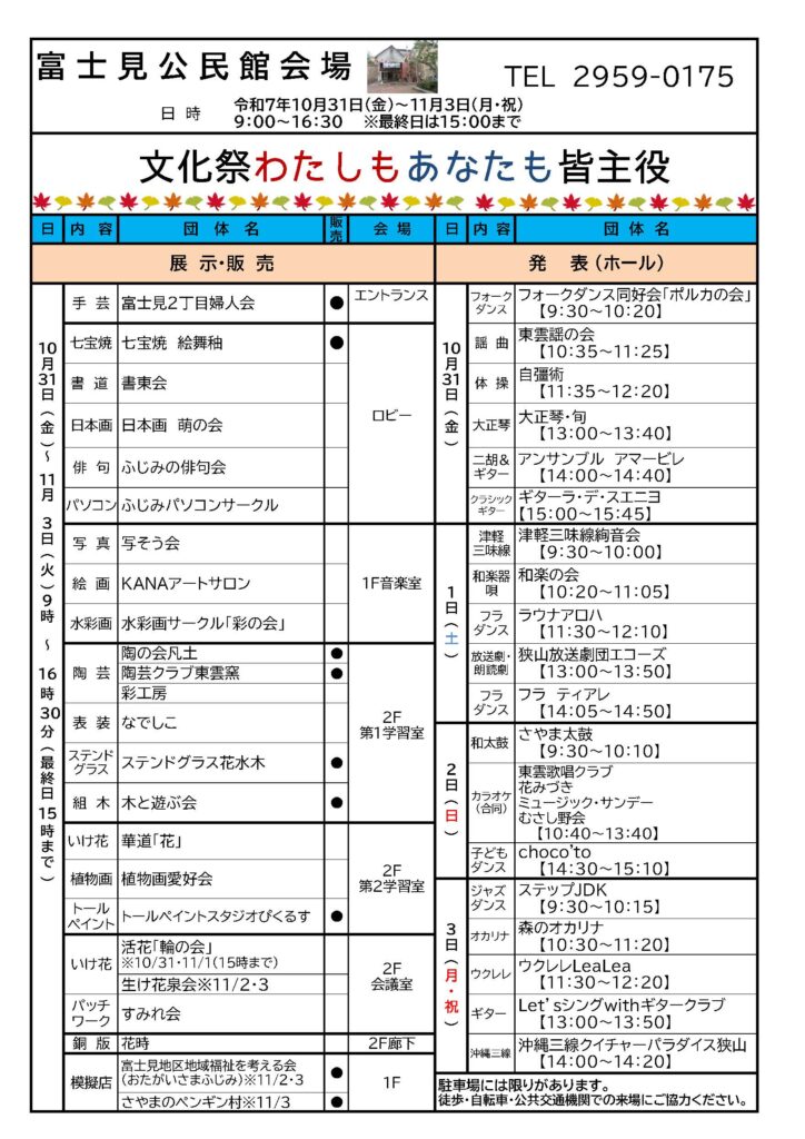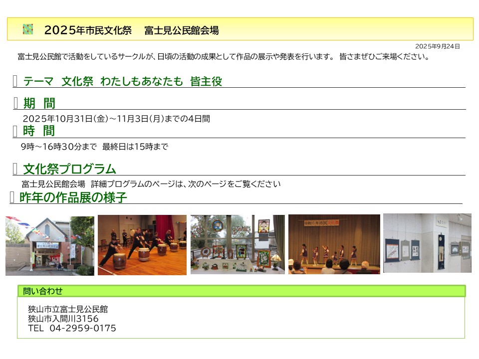 埼玉県狭山市入間川にある公民館。180人収容のホールが特徴。約120サークルの団体が利用し、公民館の主催事業も実施しています。