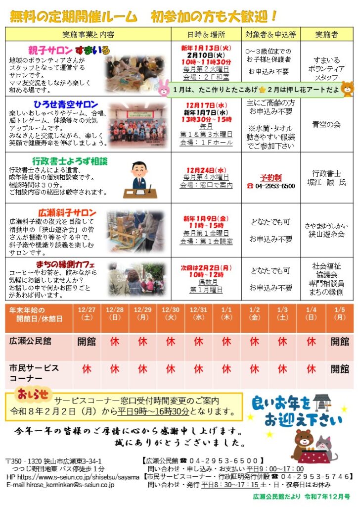 埼玉県狭山市広瀬東にある公民館。「地域みんなの公民館」をスローガンに、利用者の皆様と話し合い、共に協力しあって、より良い地域づくりを目指します。