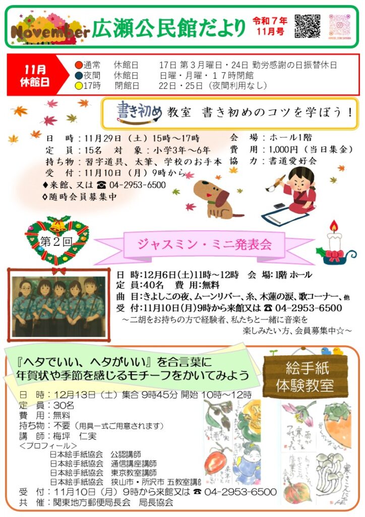 11/1~11/4 ★市民文化祭 広瀬会場 前期