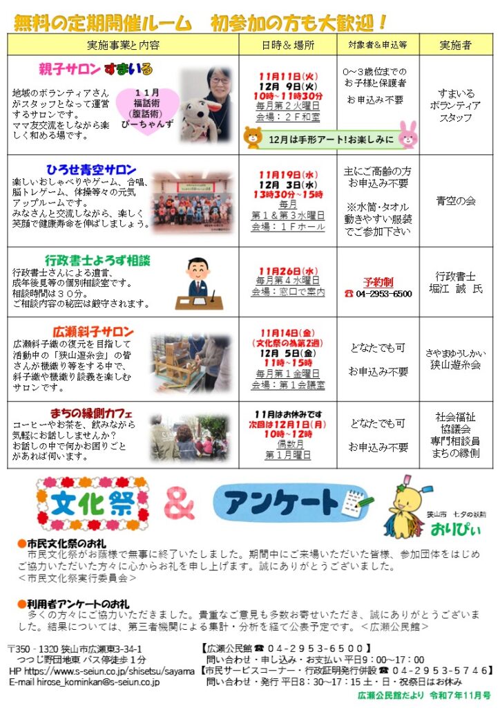 埼玉県狭山市広瀬東にある公民館。「地域みんなの公民館」をスローガンに、利用者の皆様と話し合い、共に協力しあって、より良い地域づくりを目指します。