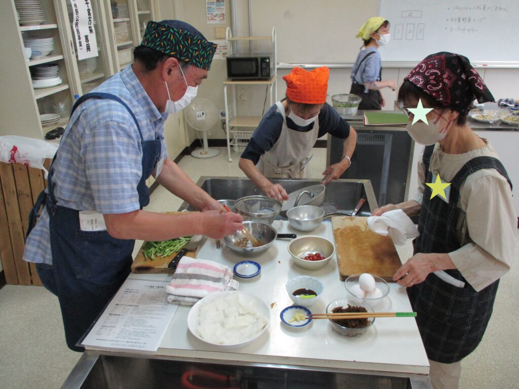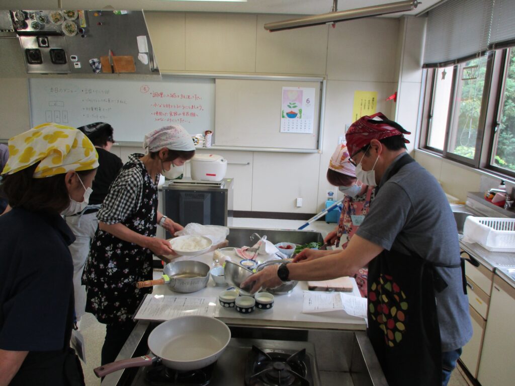 男性の参加者も増えて、みんなでサポートしながら調理と食事を楽しんでいます。