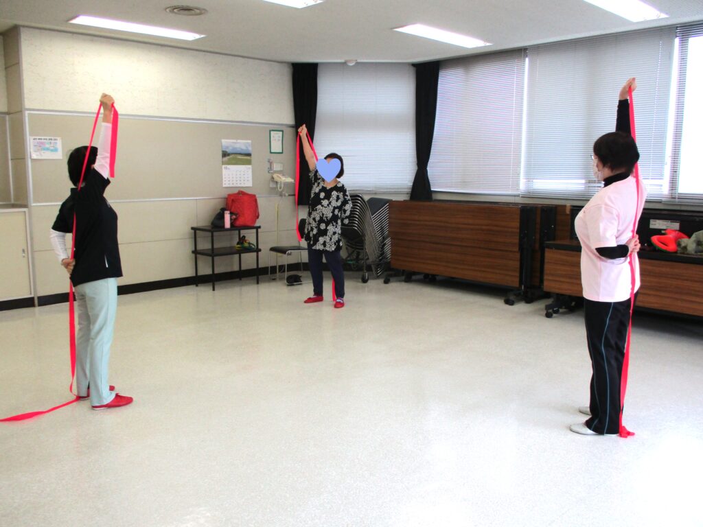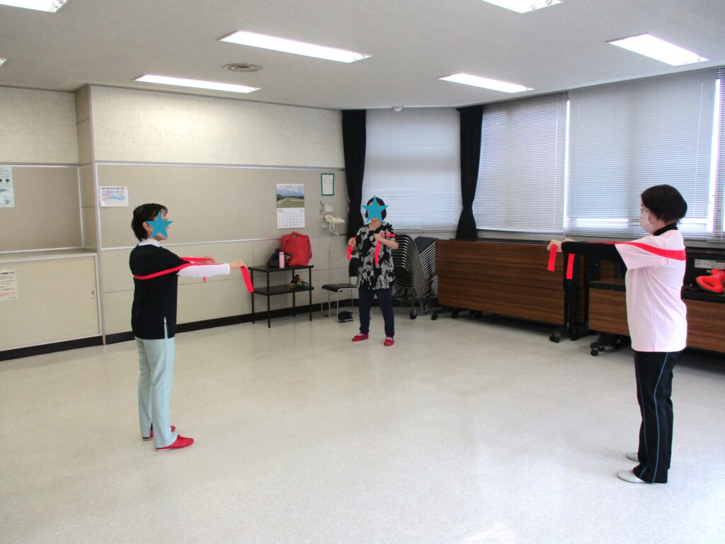 音楽に合わせながら行い、介護予防にも役立てられる どなたでも楽しめる運動です。