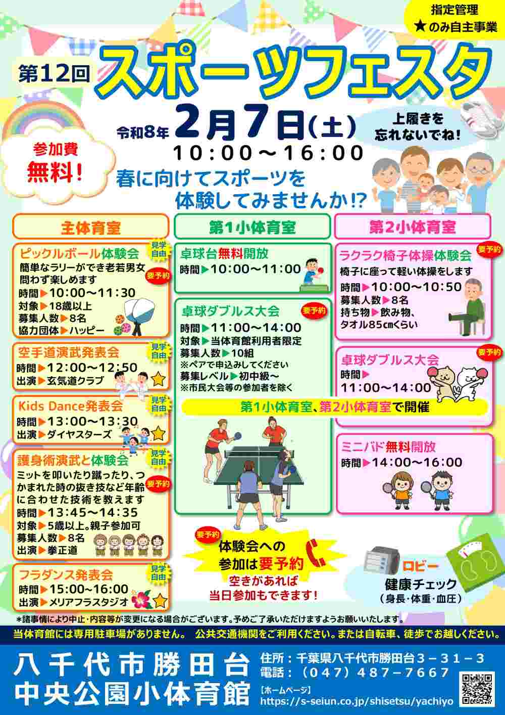 11:30〜14:00 体力測定会&からだチェック 握力・脚力測定など健康づくり課とコラボレーション!やちよ元気体操も(11:30〜12:00)ご紹介します。(予約不要)