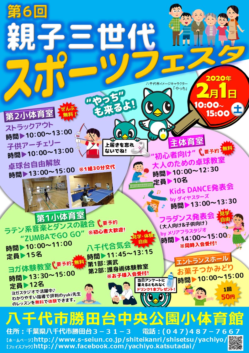 「大人のための卓球教室」、「ヨガ体験教室」ならびに「ラテン系音楽とダンスの融合 ZUMBAでGO GO」ですが、参加者を受け付けております。お電話お待ちしています。TEL:047-487-7667