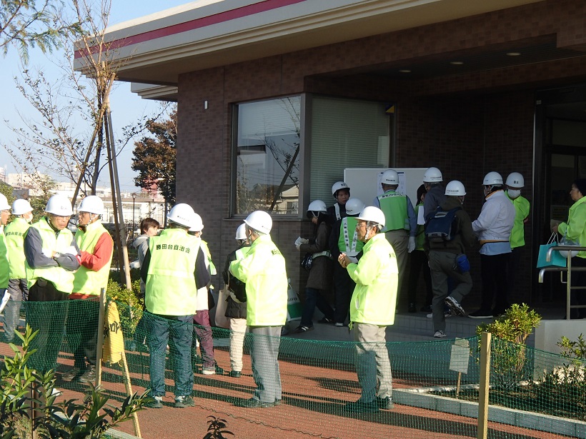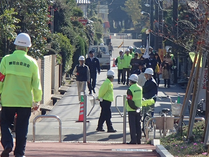 避難誘導訓練は、実際に勝田台中央公園から勝田台南小学校に移動しました。